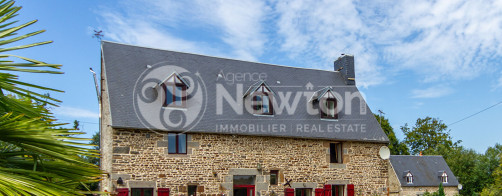 MANCHE, près de Pontorson, maison en pierres 7 pièces, 4 chambres, piscine couverte, jardin, garages