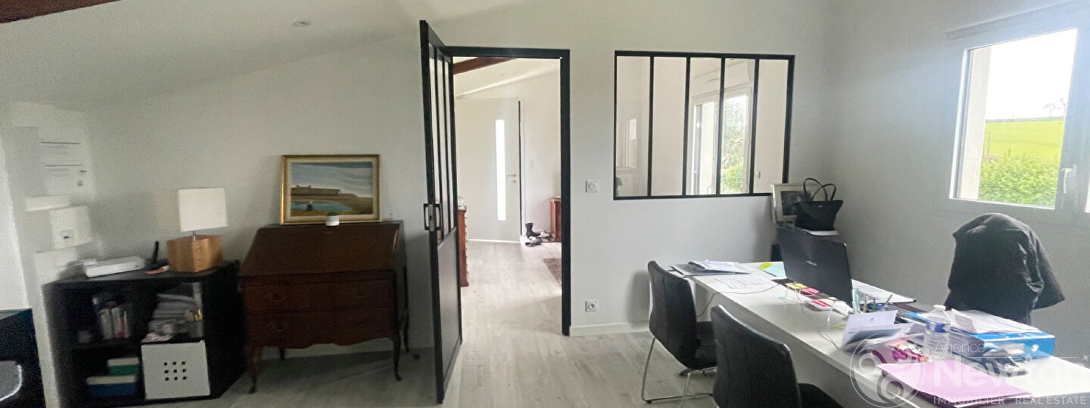 It is connected to mains drainage, and benefits from oil-fired central heating. The garden is fully enclosed and easy to maintain, with access via electric gates. A standout feature is the independent office suite, comprising a reception area, two offices, shower room, and WC, offering flexibility for a home business, independent living space, or rental income opportunity.