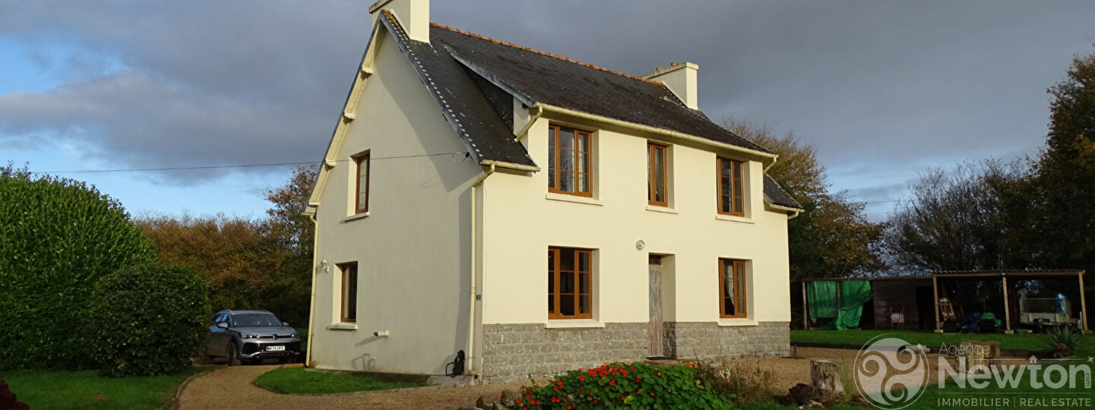 This three-bedroom detached property boasts landscaped gardens surrounding the house. Stunning views of the countryside can be enjoyed from every window, and the property is situated near the village of Bolazec.