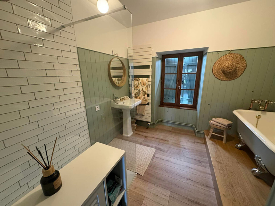 The main farmhouse comprises a ground floor large entrance hallway leasing from back to front with access down the stone stairs to the cellar, utility room, toilet, a stunning country style kitchen with log burner and pantry, a traditional French lounge with large stone fireplace and wood burner, a large conservatory overlooking the land and the lake. 1st floor 3 very light and tastefully decorated bedrooms, one with a walk-in dressing room, a family bathroom with rolltop bath and shower, and another shower room with hand basin. The property benefits from full central heating, double glazing throughout, fibre optics available, and drainage by a septic tank.