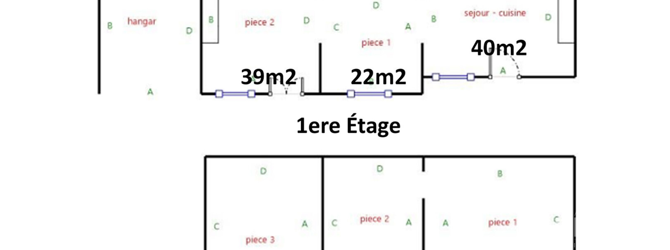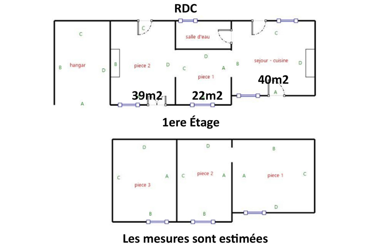 First floor : 2 large rooms of average 40m2 each (Currently reached by a ladder)