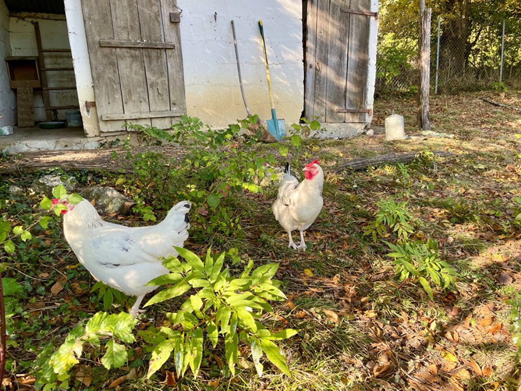 Chicken coop, horse shelter, vegetable garden, and a variety of mature fruit trees