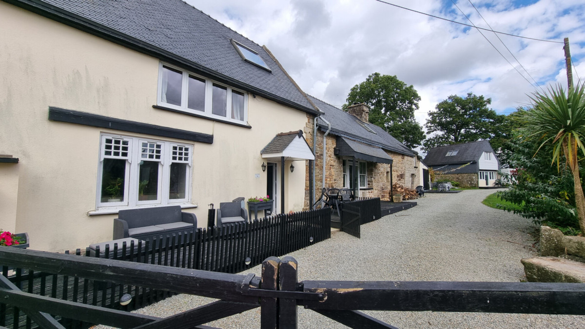 A gated entrance opens onto a gravelled driveway to the first property, the main house, with wooden decking to the front and door into a spacious kitchen/diner. On this floor you will also find a lounge with impressive, feature Breton fireplace and wood burner, a snug area or second lounge, a bedroom and a shower room. On the first floor there are two very spacious bedrooms, both with ensuite bathrooms featuring both a bath and a shower.