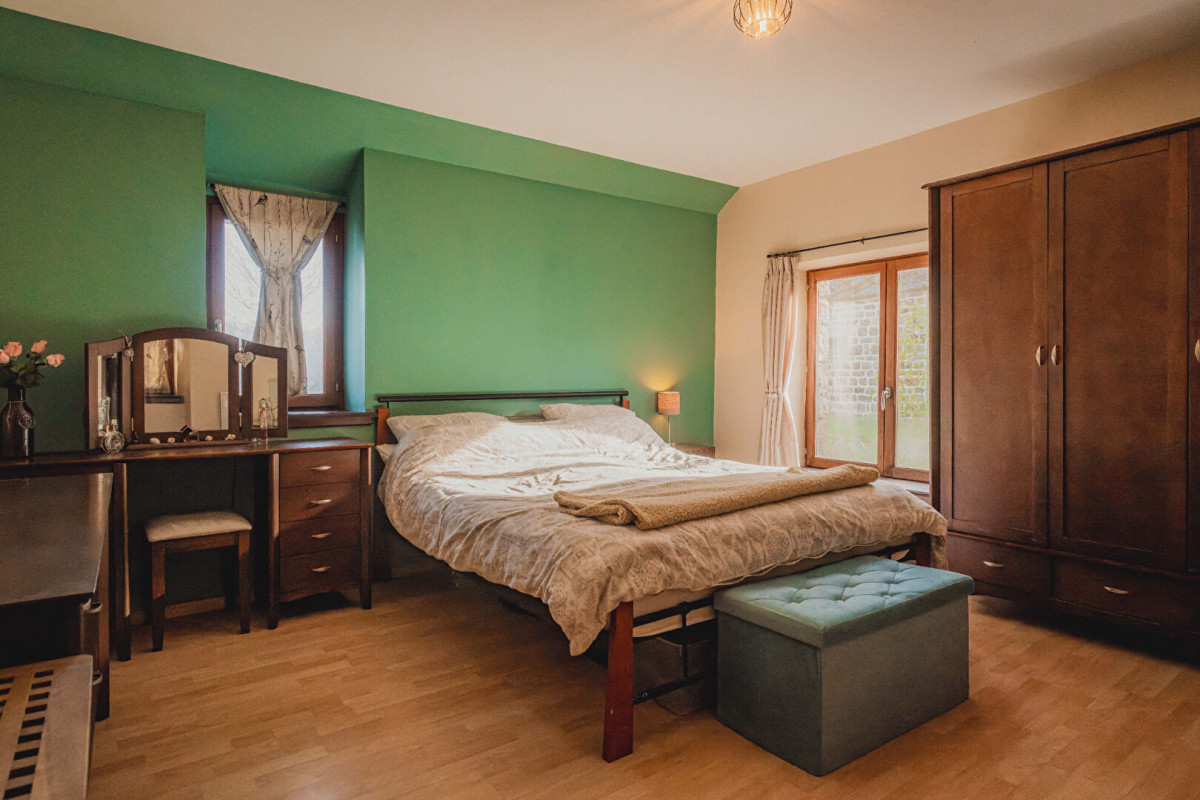 Tucked away at the end of a quiet lane in a serene hamlet, this beautifully renovated 2-bedroom, 1-bathroom cottage in the commune of Champsecret, close to Domfront and Bagnoles de L'Orne, offers the perfect combination of countryside tranquility and modern comfort. Surrounded by farmland and with a detached barn, this property is ideal for those looking for a peaceful retreat or a family home. The cottage is in excellent condition, ready to move into, and is complemented by a well-maintained garden that is fully enclosed, making it pet-friendly.