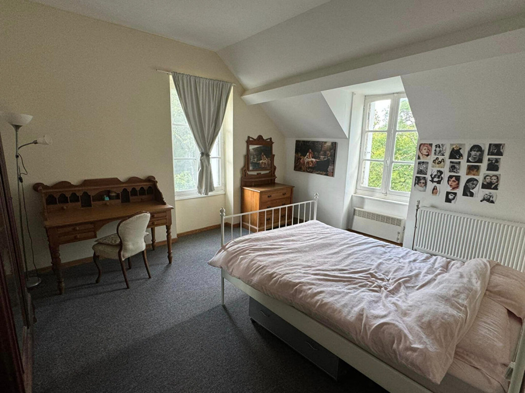 The main house comprises an entrance hallway with original floor tiles and an oak staircase leading to the 16m2 kitchen, fitted with high-quality wood units and a built-in oven, dishwasher and microwave. The dining/sitting room runs the length of the main house and has retained the original four French doors leading out to a generous terrace to the rear and side. A second sitting room or library/study is on the ground floor and features an original marble fireplace, double glazing, and a parquet floor.