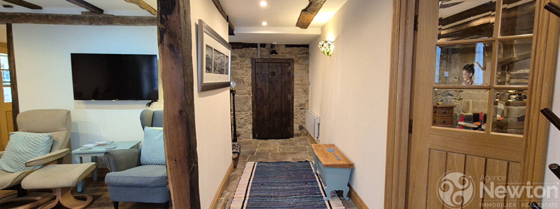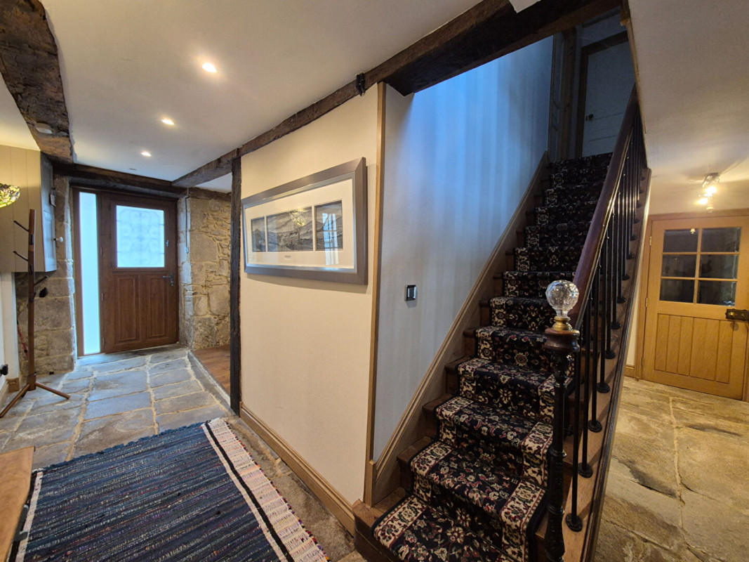 Le long du hall se trouvent deux autres chambres. En continuant le long du hall, une porte s'ouvre sur une partie encore plus belle et unique de la maison avec une cheminée en pierre le long du hall. A côté de la cheminée, une porte s'ouvre sur le haut de l'escalier en colimaçon en pierre. Au bout de ce hall se trouve une pièce, connue pour être historiquement la salle de travail des horlogers.