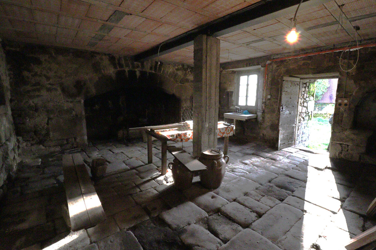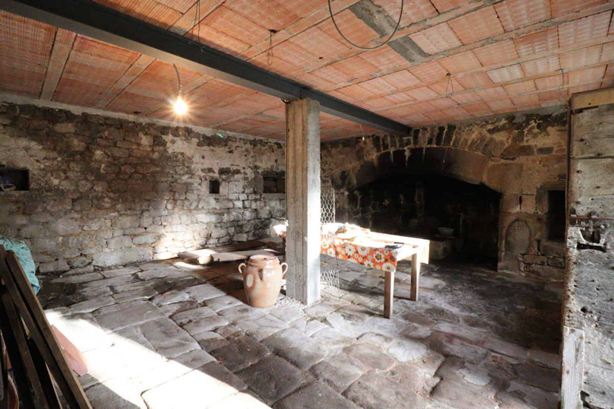 En entrant dans la maison par des marches en pierre d'origine, vous arrivez dans une cuisine de 16,6m2 avec une grande cheminée en pierre apparente qui est le point central de la pièce. Cette pièce dispose également d'une porte arrière donnant sur le jardin. De la cuisine partent une chambre de 10,8m2, une salle de bain de 3,4m2 et un wc séparé.