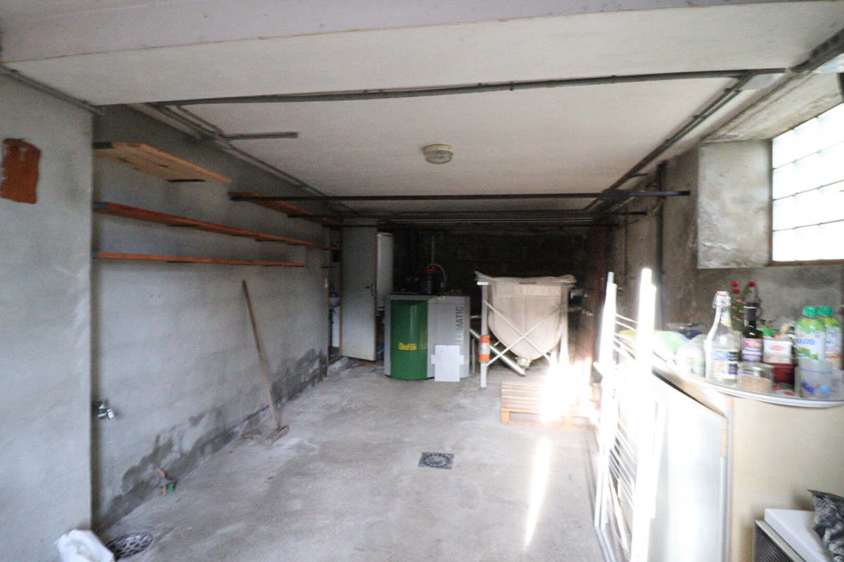 L'entrée de la maison se fait par un hall d'entrée central. A gauche, une belle pièce de caractère de 40,8m2 avec une grande cheminée et beaucoup de lumière naturelle. A droite, un garage de 25m2.