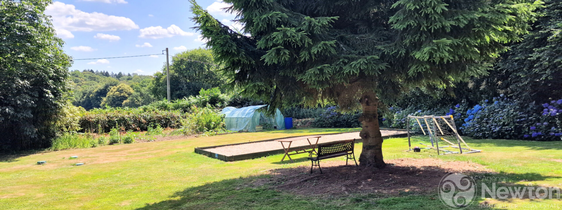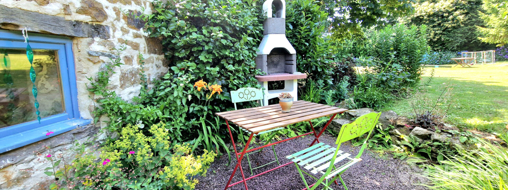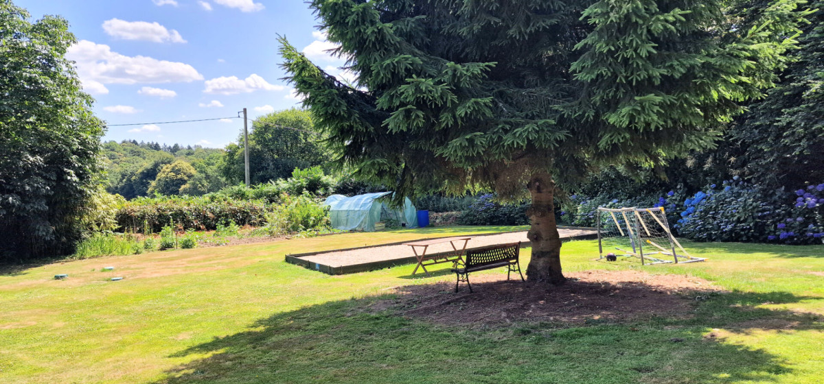 Le jardin est à couper le souffle et offre une variété de plantes et d'arbres, un étang, des espaces de pelouse de jeux, un terrain de pétanque, une aire de jeux, des coins ombragés, un potager, une pépinière, des dépendances pour le stockage? et bien plus encore.