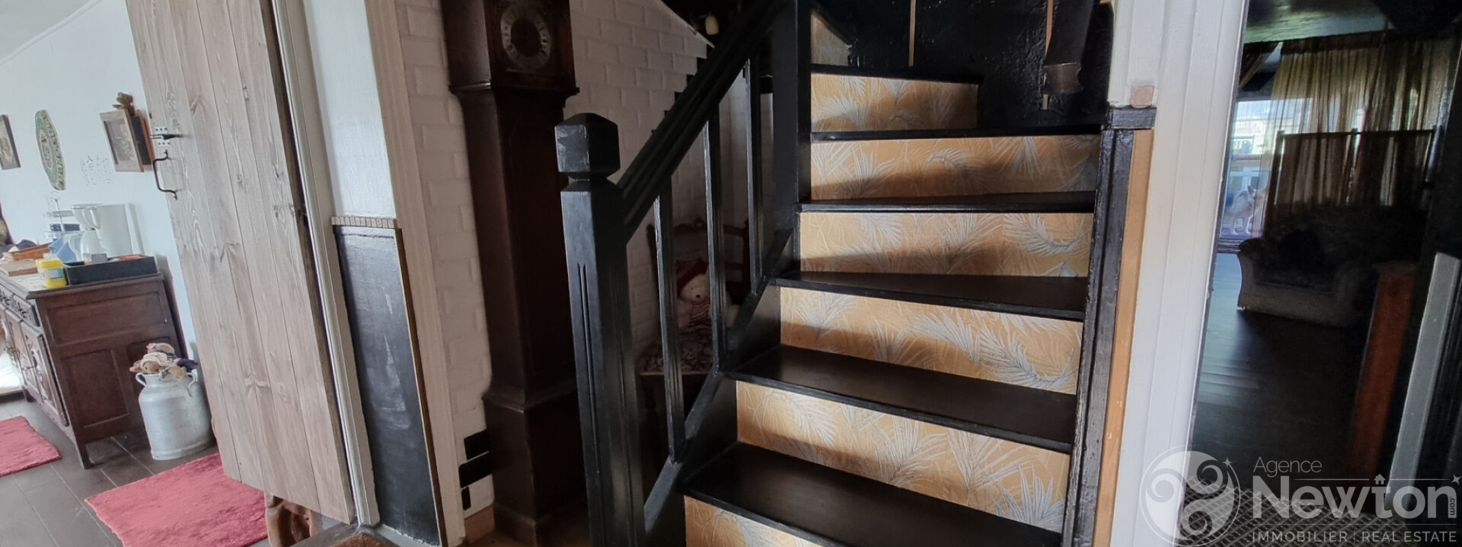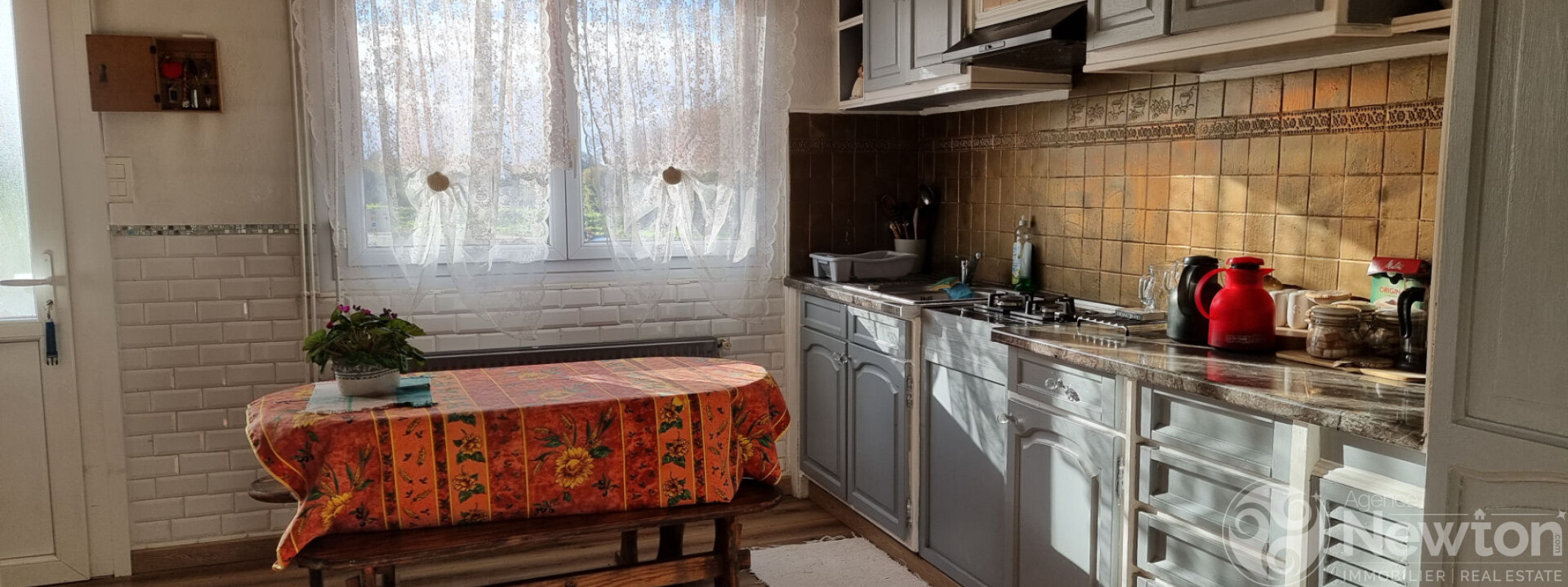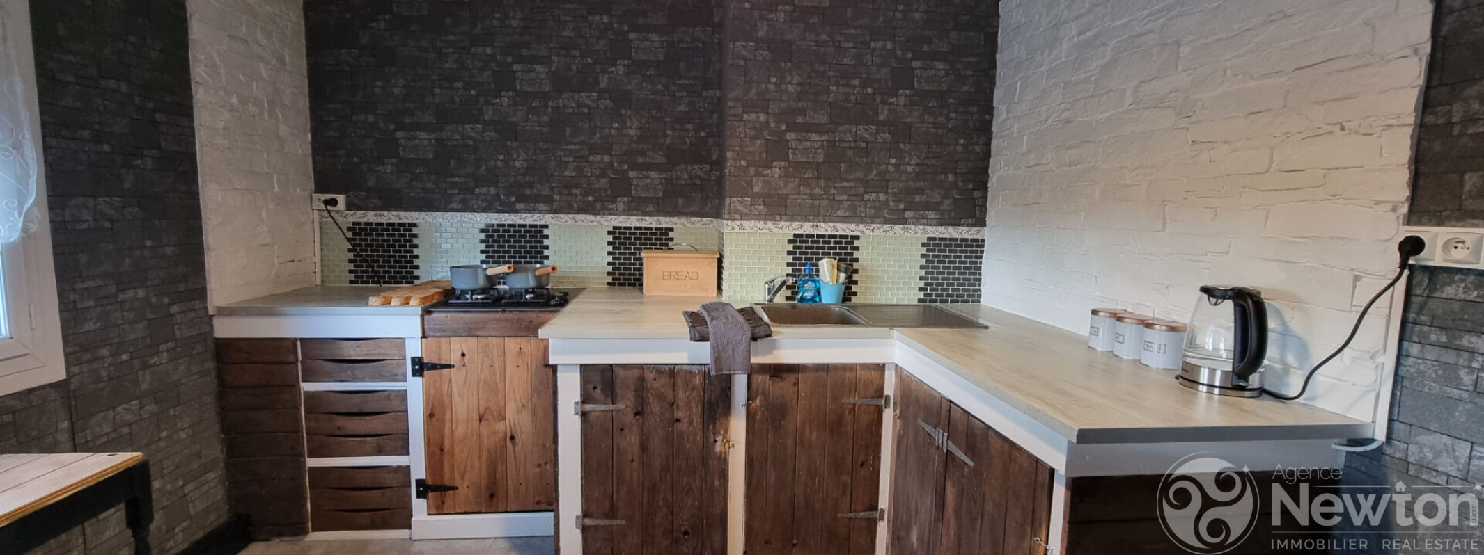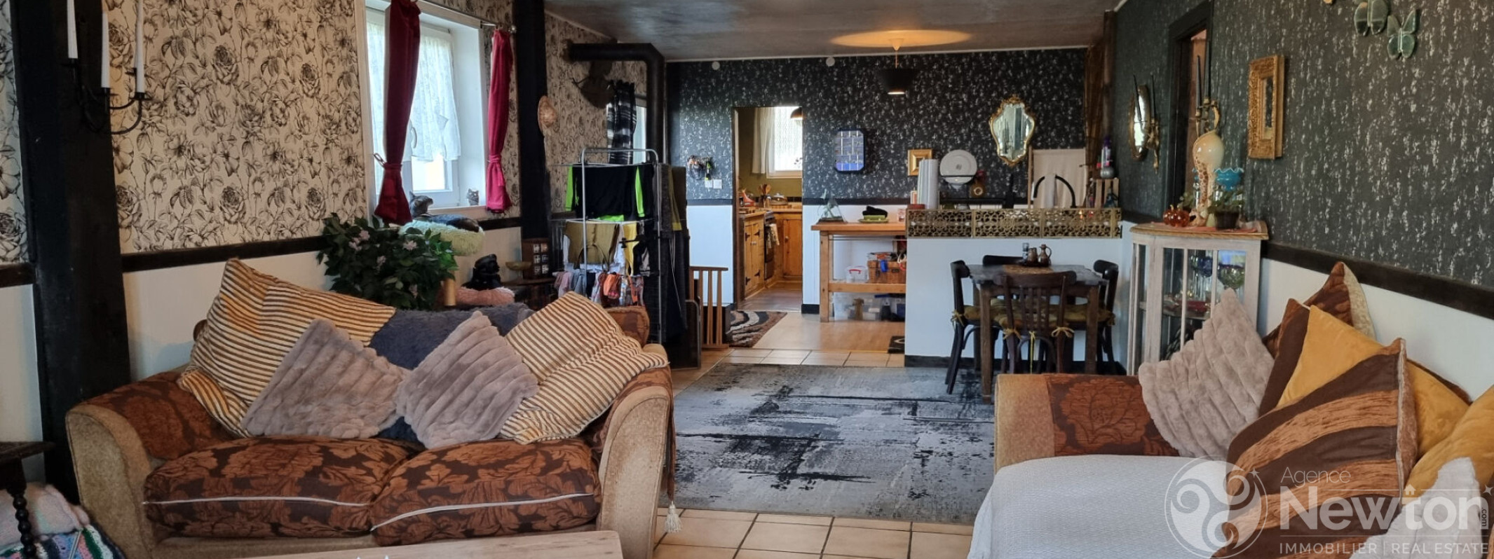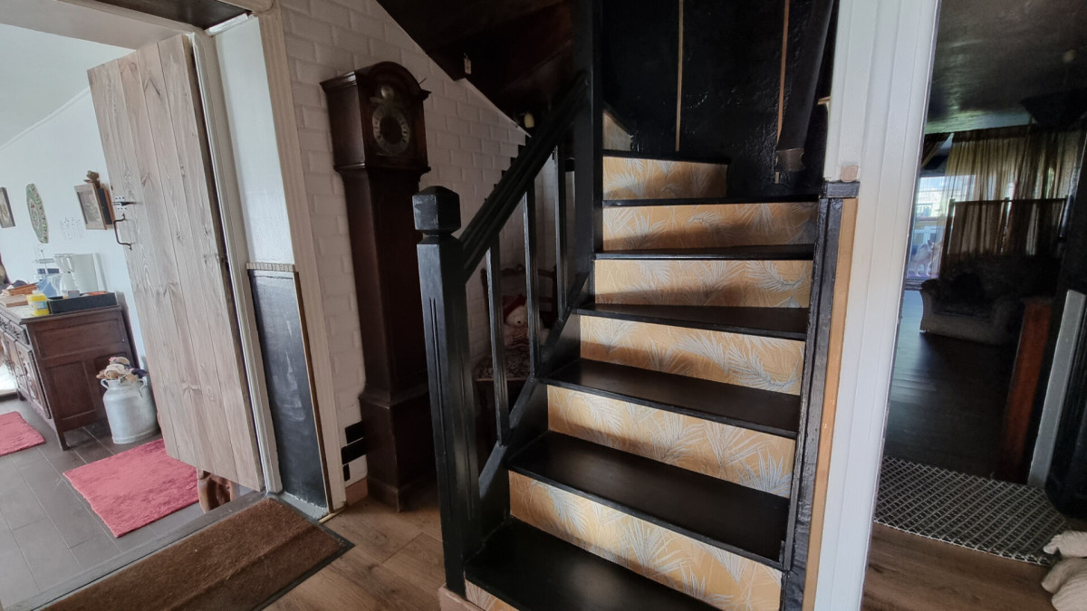 En entrant, vous découvrirez une cuisine commune accueillante destinée aux hôtes, avec une chambre avec salle d'eau privative sur votre droite. Le couloir mène ensuite à une spacieuse salle de petit-déjeuner, réchauffée par un poêle à bois, ainsi qu'à un bureau/pièce de rangement attenant.