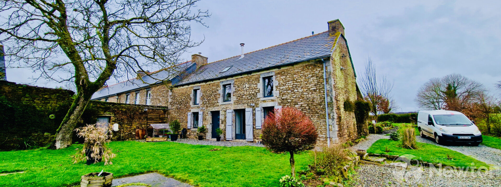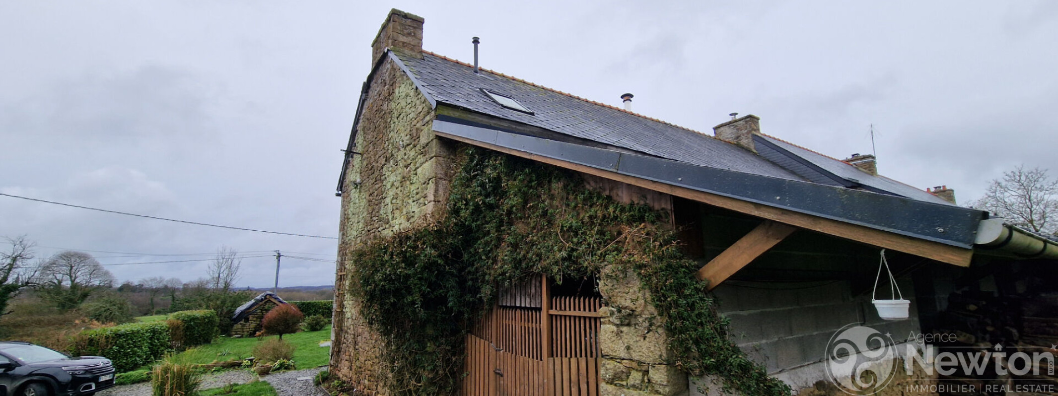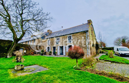 Magnifique maison mitoyenne en pierre de 3 chambres, avec mezzanine, atelier, garage et jardin, à proximité de Laurenan, Merdrignac et Plemet.