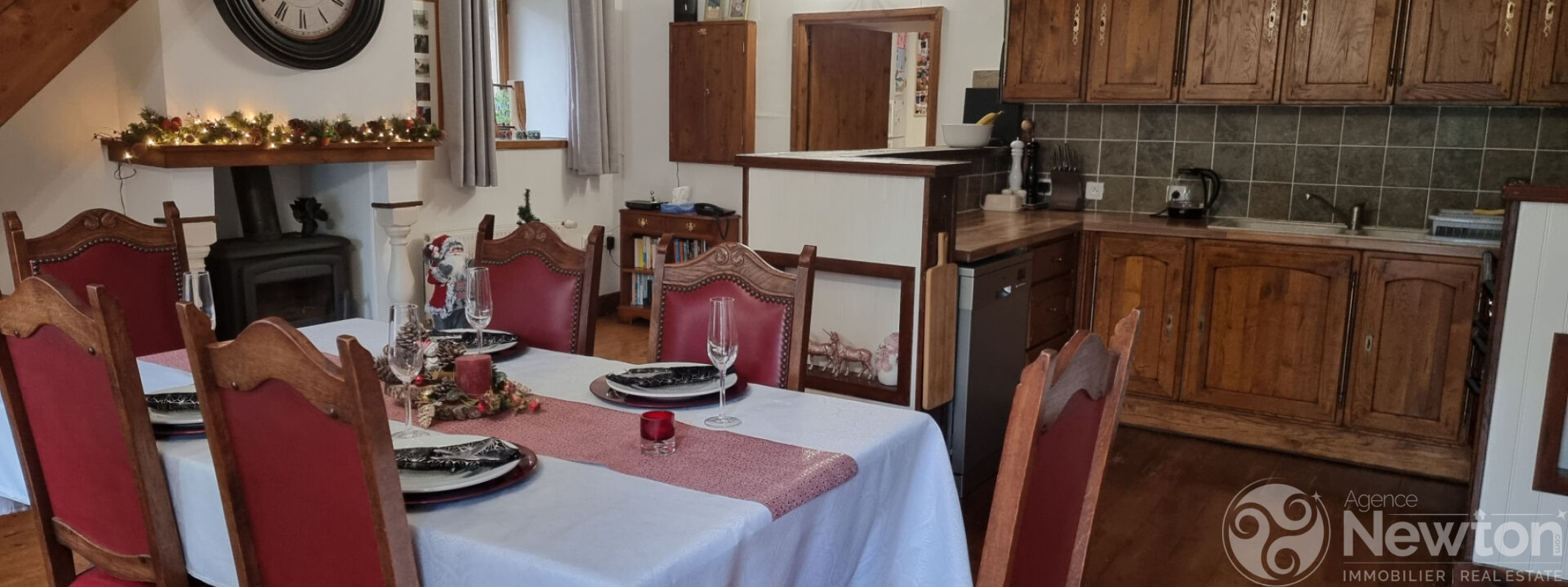 - Grande cuisine/salle à manger, également équipée d'un poêle à bois