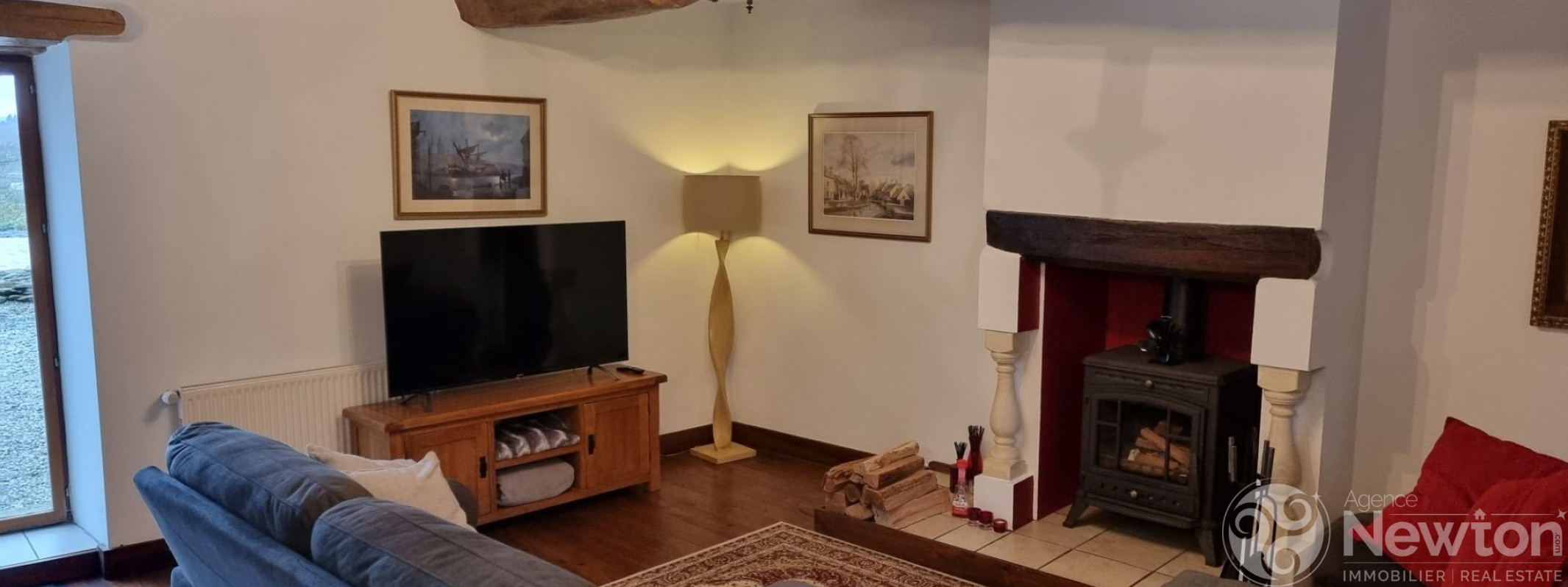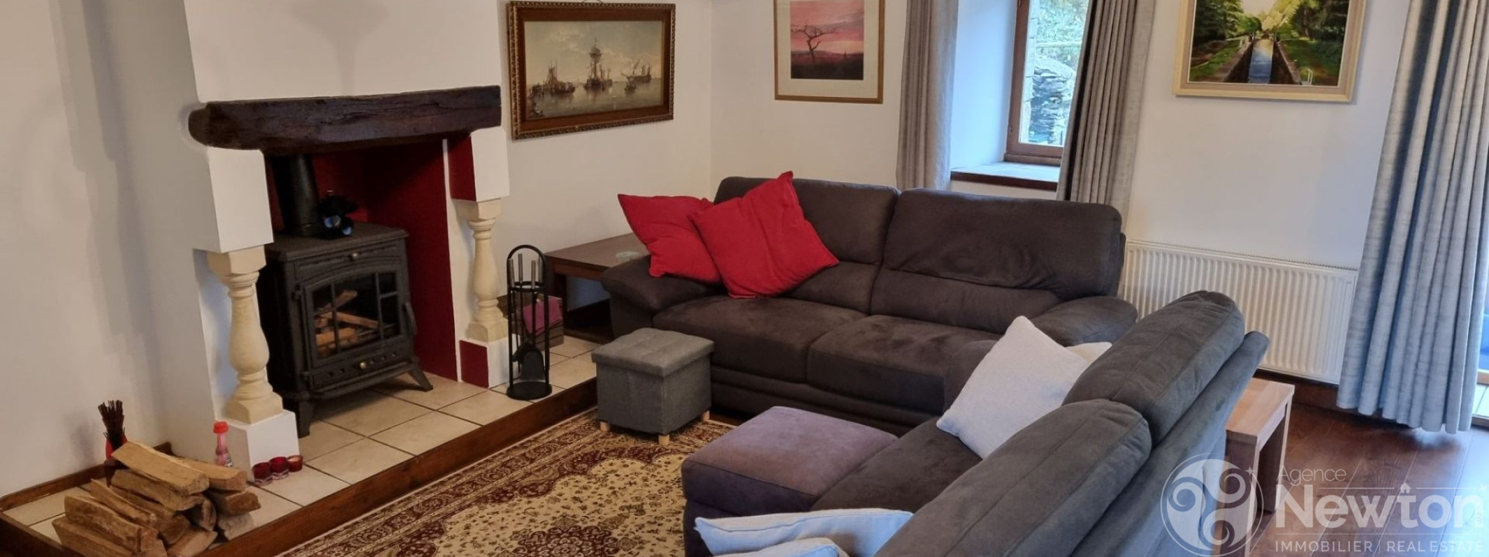 - Salon chaleureux et accueillant avec poêle à bois