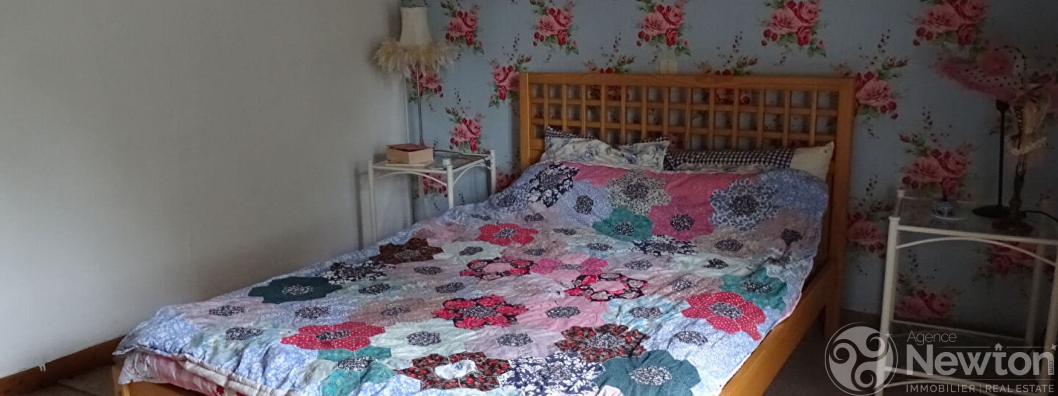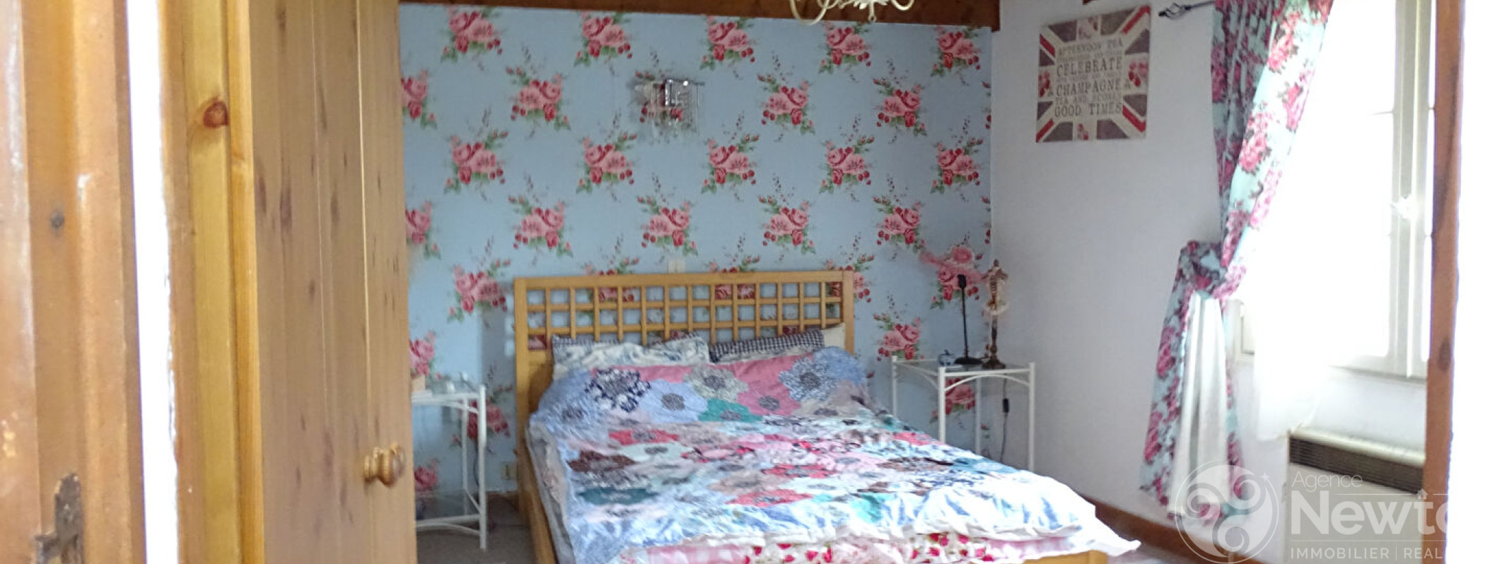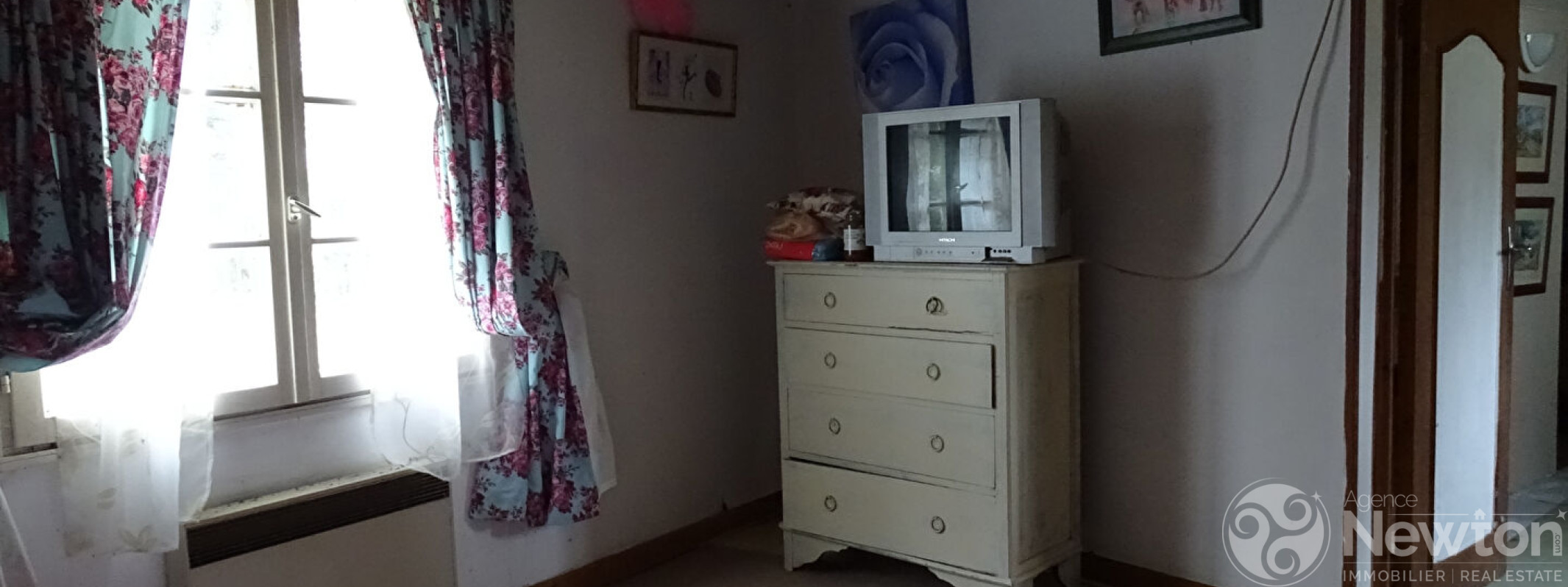 La cuisine est équipée d'un poêle à bois et d'une porte donnant sur le jardin. Ce dernier mène à un salon lumineux grâce à ses fenêtres à double exposition. Un couloir dessert depuis le salon une chambre, une salle de bains et des toilettes séparées.