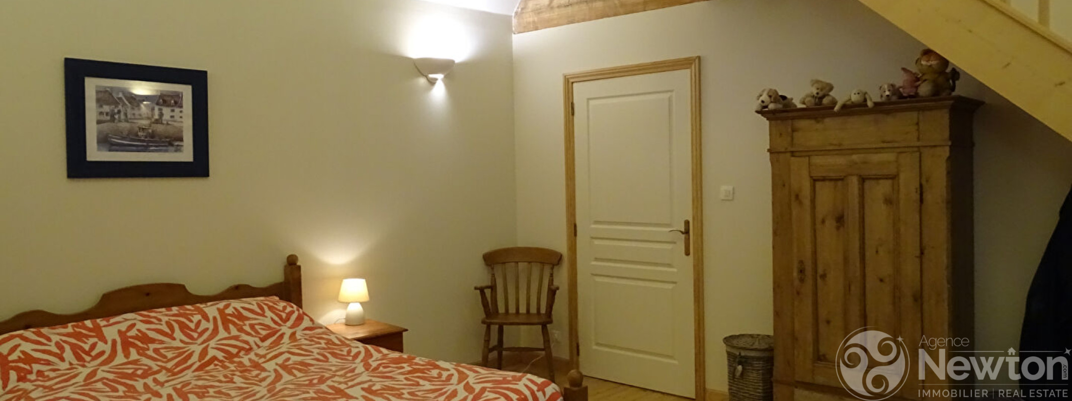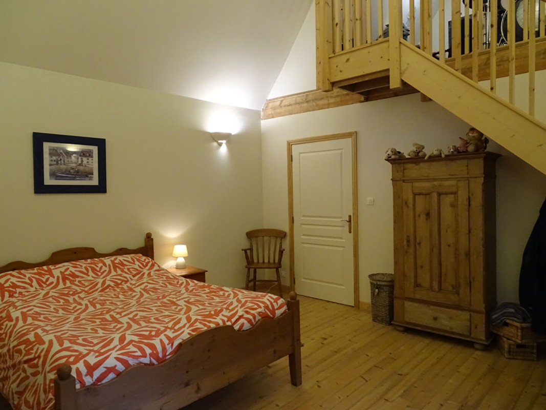 Au premier étage, la chambre principale est dotée d'un plafond voûté qui lui confère un cachet exceptionnel ; elle dispose d'une superbe cheminée et d'un escalier menant à une mezzanine, avec un débarras à l'arrière. On y trouve également une deuxième chambre de bonne taille et une salle de bains équipée d'une douche à l'italienne.