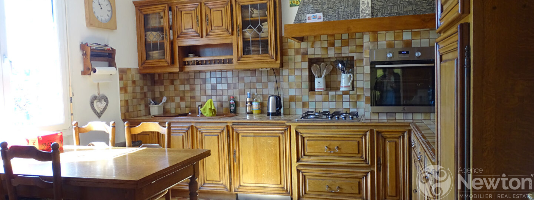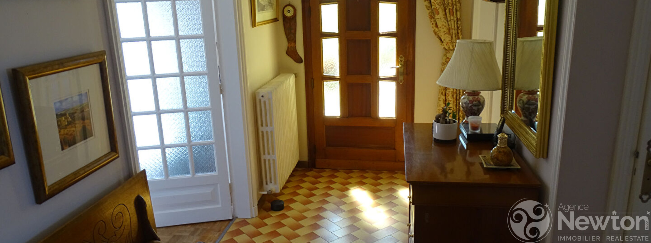 Cette imposante maison propose de généreux espaces de vie répartis sur trois niveaux, un jardin clos et une dépendance.