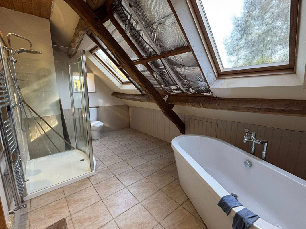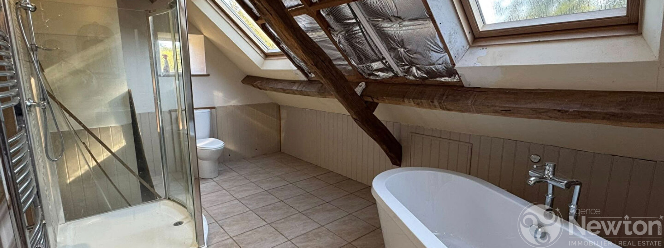 Le premier étage comprend deux chambres et une salle de bains familiale, tandis que le second étage offre une grande chambre sous combles, idéale comme suite parentale ou chambre d'amis.