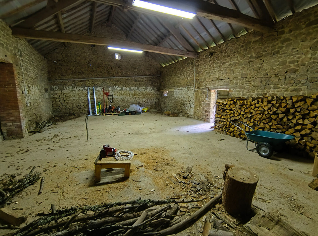 A l'extérieur, il y a deux granges, dont l'une est assez grande pour contenir plusieurs véhicules avec une double porte à laquelle on peut accéder directement depuis le chemin. Derrière la maison se trouve un terrain d'un peu plus d'un hectare composé d'un jardin engazonné, d'un étang, de prairies et de bois. Le reste du terrain est composé de plusieurs parcelles dans le hameau.