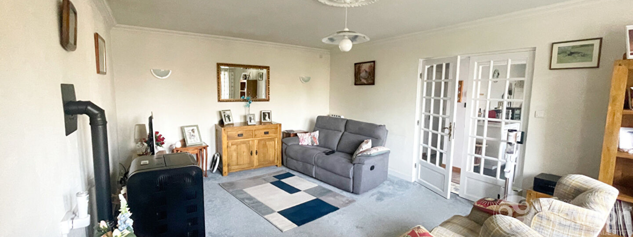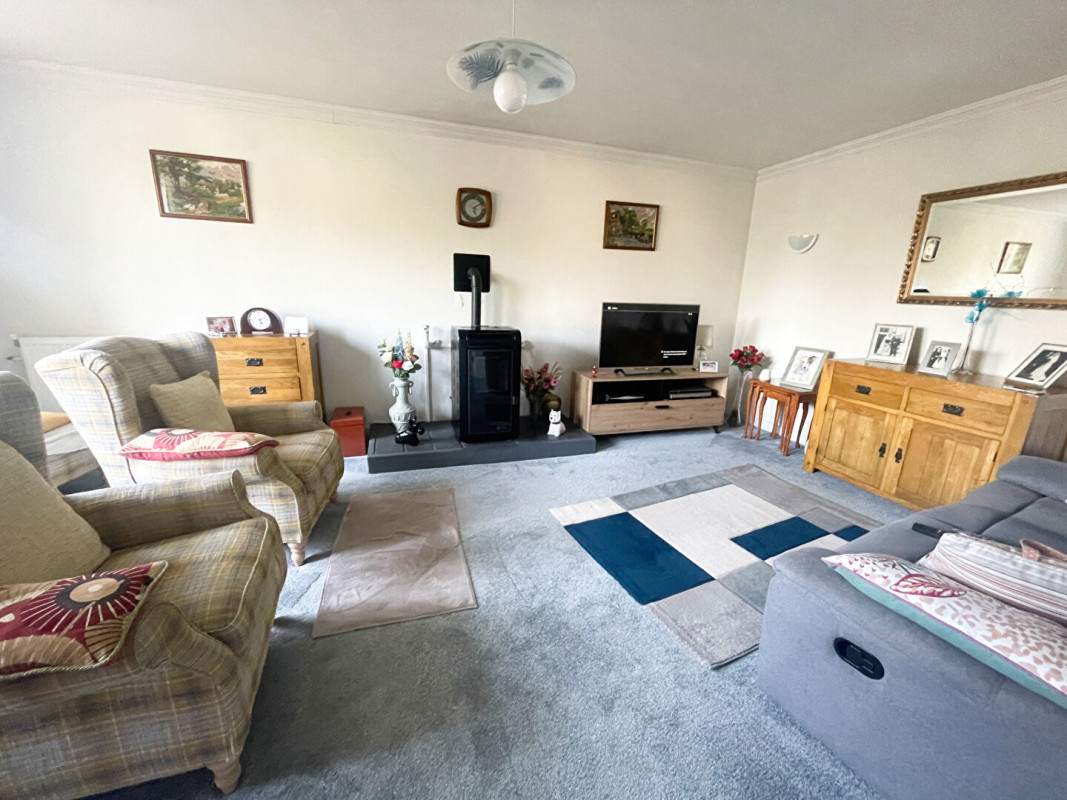 A l'extérieur, la propriété bénéficie d'un hangar offrant de nombreuses possibilités de stockage ou d'aménagement. Les jardins, situés à l'avant et sur le côté de la maison, proposent un espace agréable et facile d'entretien, idéal pour profiter du calme environnant.