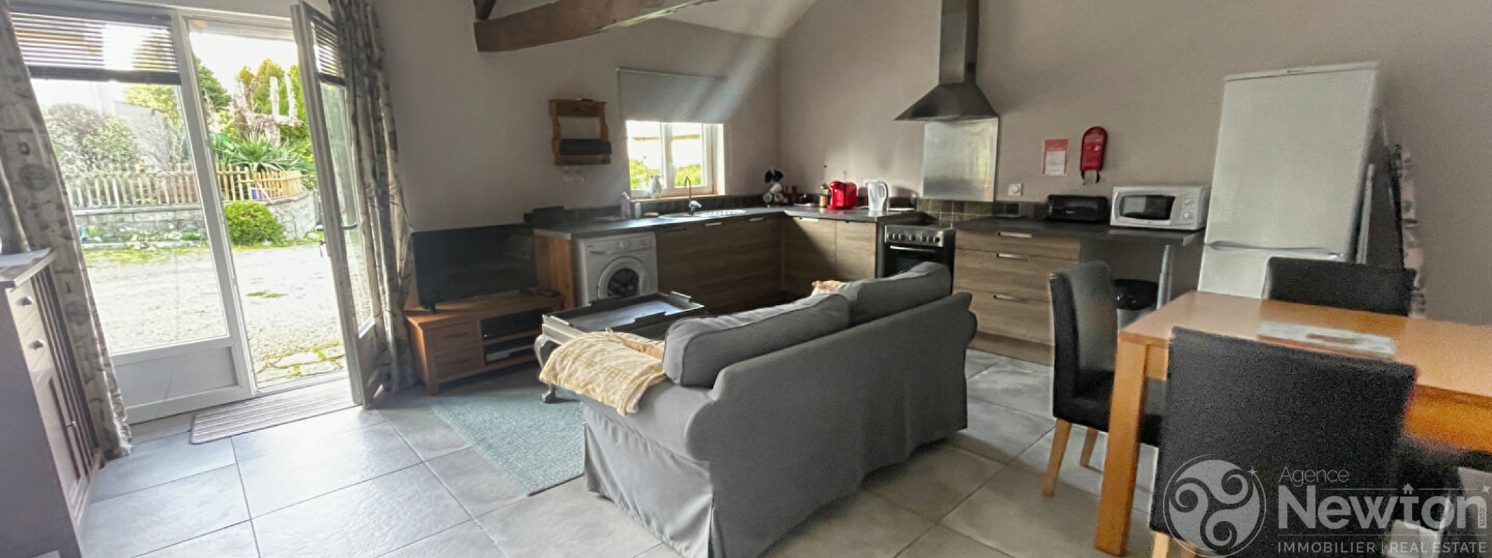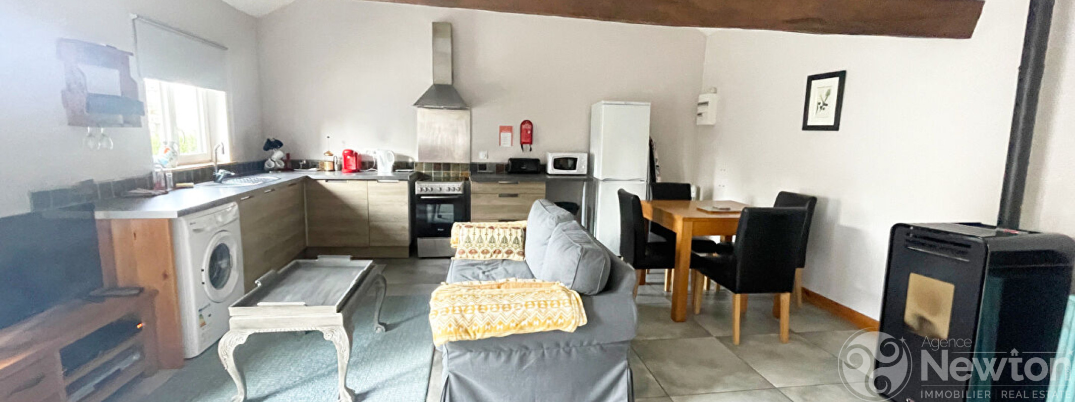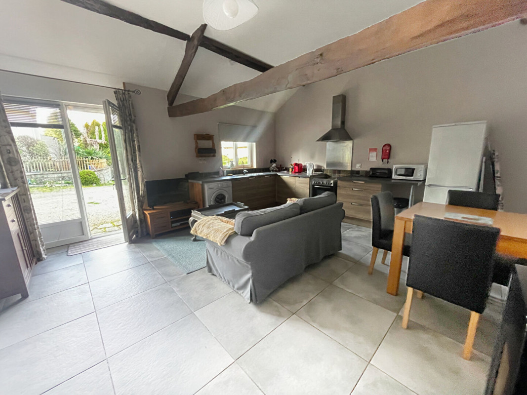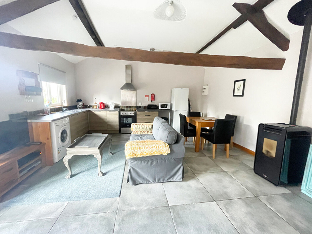 La maison principale comprend, au rez-de-chaussée, une cuisine, un salon équipé d'un poêle à granulés et une salle de bains. A l'étage, trois chambres offrent un espace nuit confortable. Le cottage indépendant dispose d'une pièce de vie ouverte avec cuisine et espace salle à manger, d'une salle d'eau ainsi que d'une chambre, parfait pour accueillir des invités ou pour une activité de gîte.
