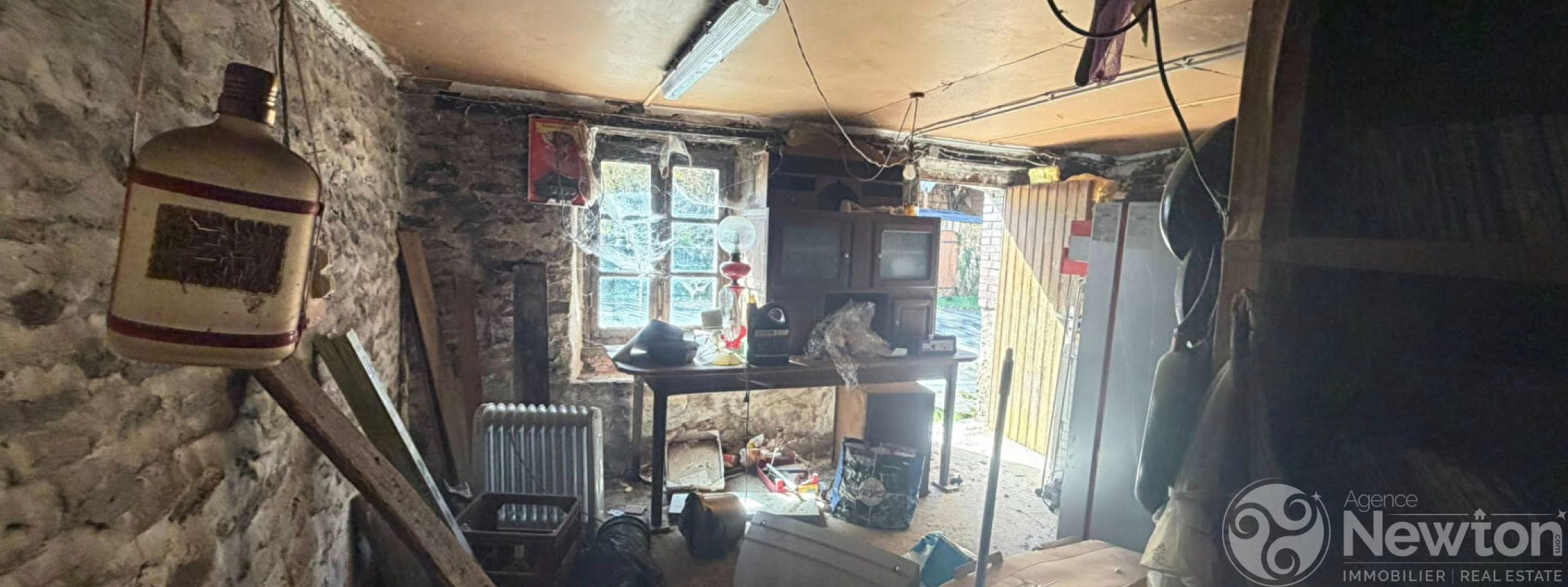 La maison principale comprend, au rez-de-chaussée, une entrée, un salon salle à manger avec cheminée ouverte, une cuisine, une salle de bains et un WC. Au premier étage se trouvent trois chambres avec un grenier au-dessus offrant un potentiel supplémentaire d'aménagement.