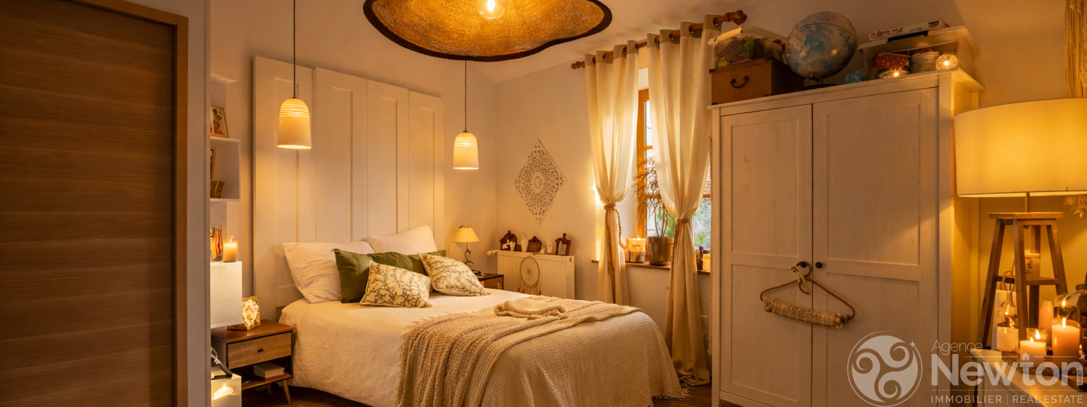 Un escalier mène à l'étage où les volumes de la grange ont été conservés, mettant en valeur la charpente apparente. Une passerelle surplombe le séjour et renforce le caractère unique des lieux. L'étage dessert deux autres chambres avec salles de bains privatives, un second salon idéal pour un espace détente ou loisirs, un bureau ainsi qu'une pièce de rangement pouvant aisément être aménagée en chambre supplémentaire si besoin.