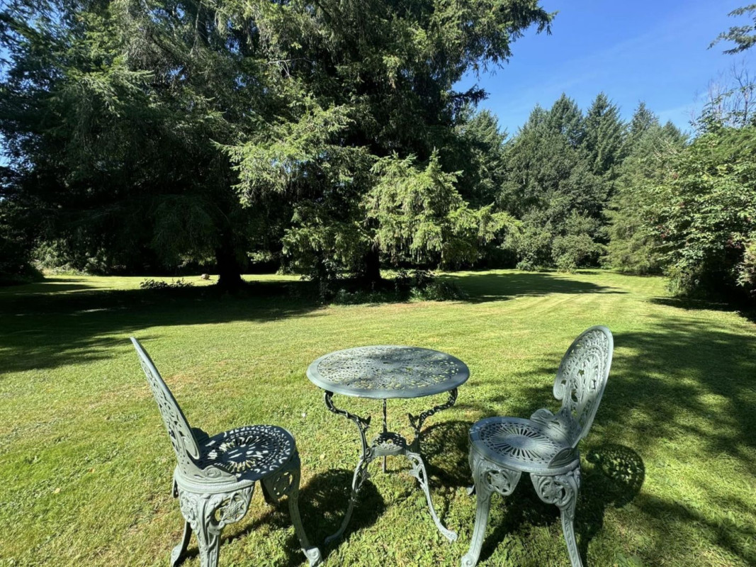 Le jardin est un véritable havre de paix, avec près d'un hectare de terrain en bordure de rivière, entouré de pins, pelouses et massifs d'arbustes.