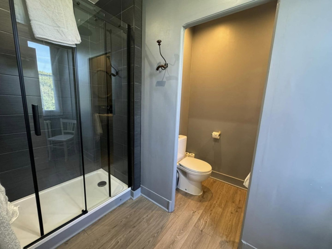 Un appartement privé comprenant deux chambres, une cuisine ouverte sur le salon, et une salle de bain familiale