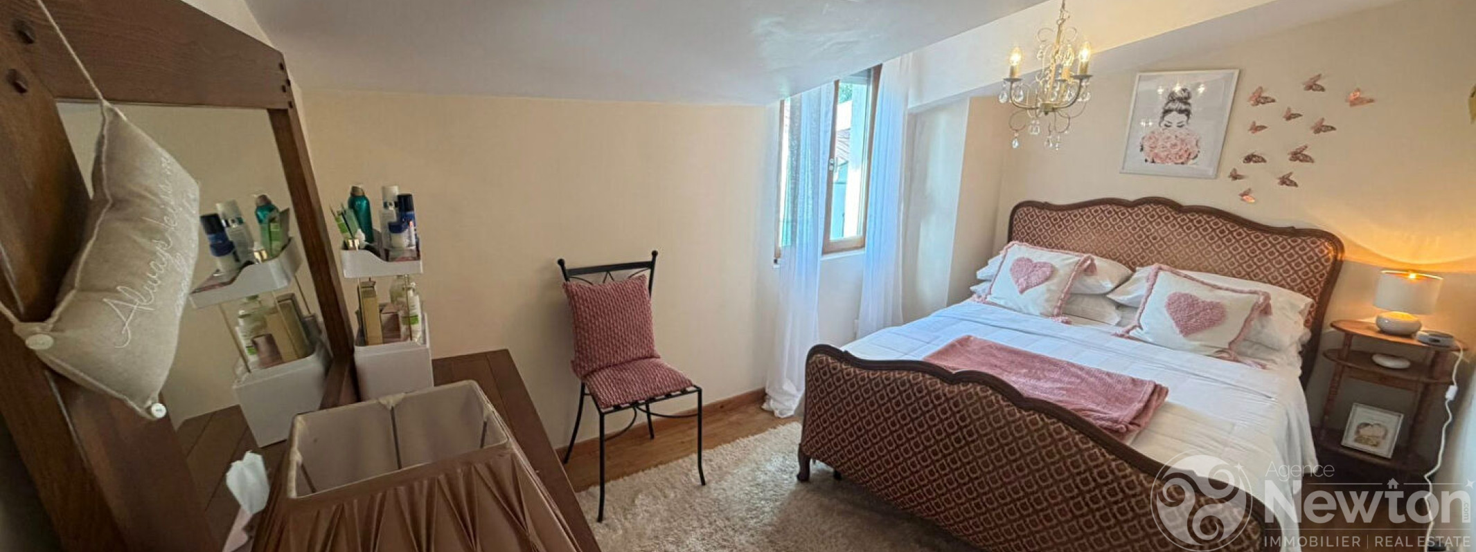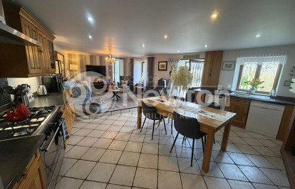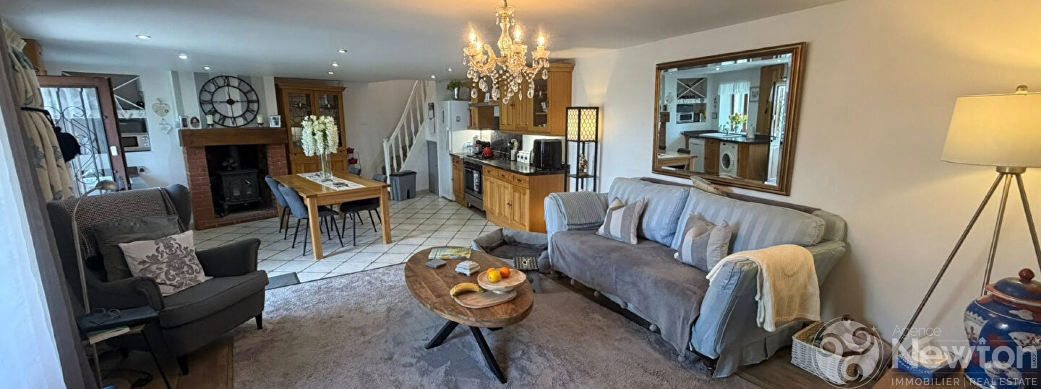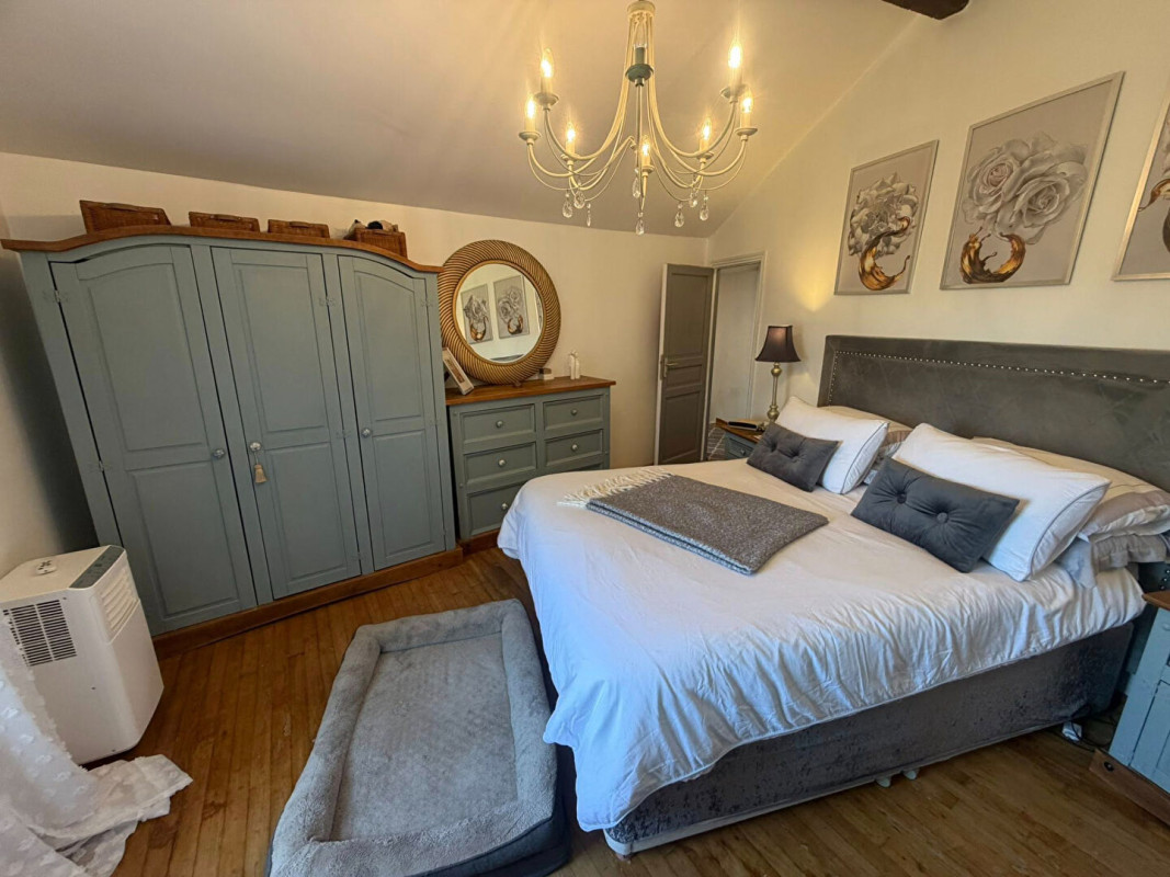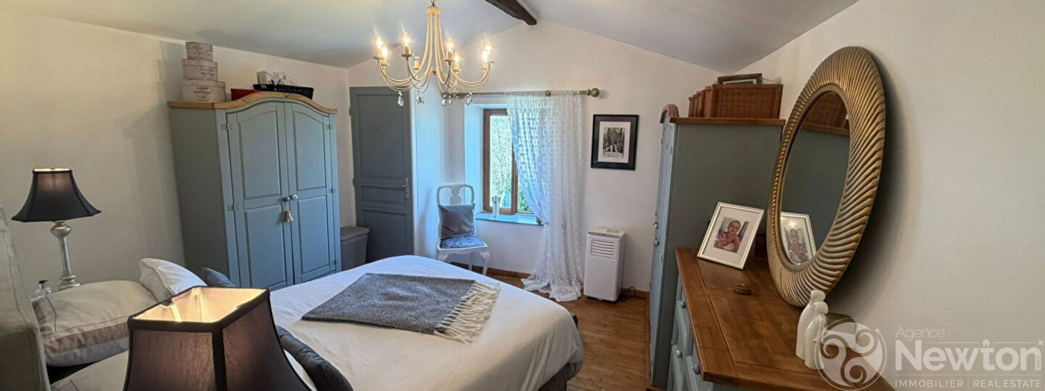 La maison se compose au rez-de-chaussée d'une spacieuse pièce de vie lumineuse avec salon, salle à manger et cuisine ouverte entièrement équipée, agrémentée d'un poêle à bois, ainsi que d'une chambre double avec salle d'eau privative. A l'étage, vous trouverez deux belles chambres doubles et une salle de bains familiale. Raccordée au tout-à-l'égout et équipée de double vitrage, la rénovation intérieure a été réalisée avec goût : il ne reste plus qu'à poser vos valises.