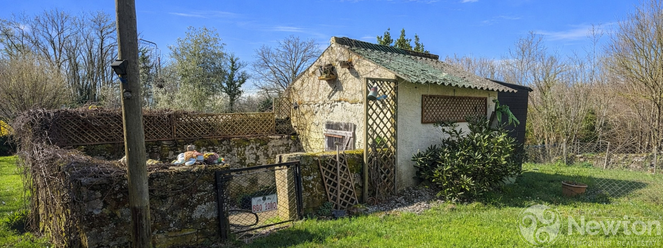 A l'extérieur, le terrain de 553 m² propose une agréable terrasse, une pelouse facile d'entretien et un abri de jardin idéal pour le stockage du bois. Une petite pièce attenante à la maison fait office de buanderie/rangement.