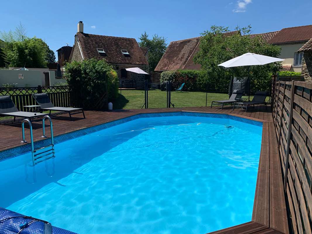 Située à proximité du village de Magnac Laval, au coeur de la campagne de la Haute Vienne, dans un petit hameau tranquille, se trouve cette maison de 4 chambres avec un gîte de 2 chambres, un grand jardin de 2977m², une piscine et une cuisine d'été.