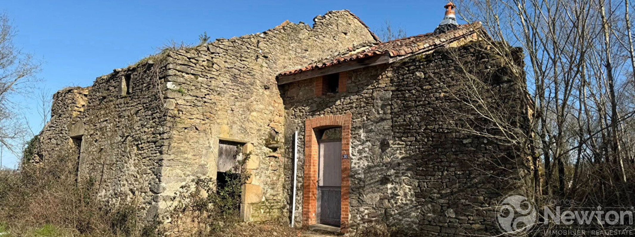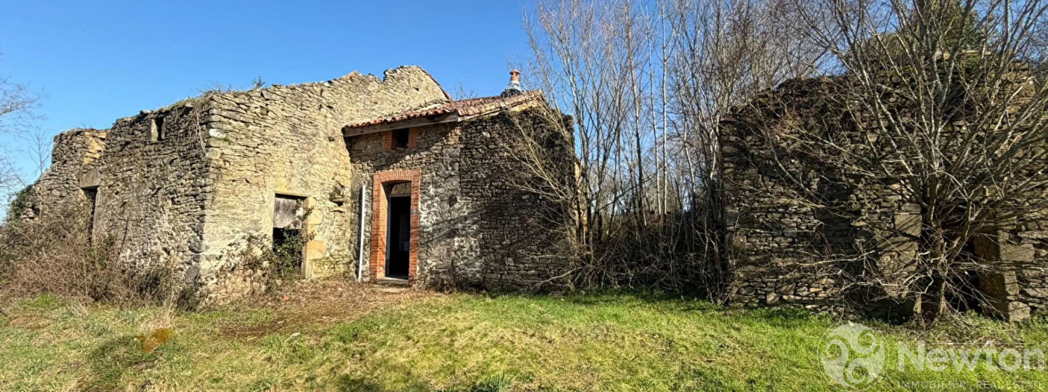 Sympathique petite propriété sur 1200 m² de jardin bien arboré, située en bout de village, composée d'une petite maison en cours de rénovation, flanquée des vestiges en ruine des anciennes granges.