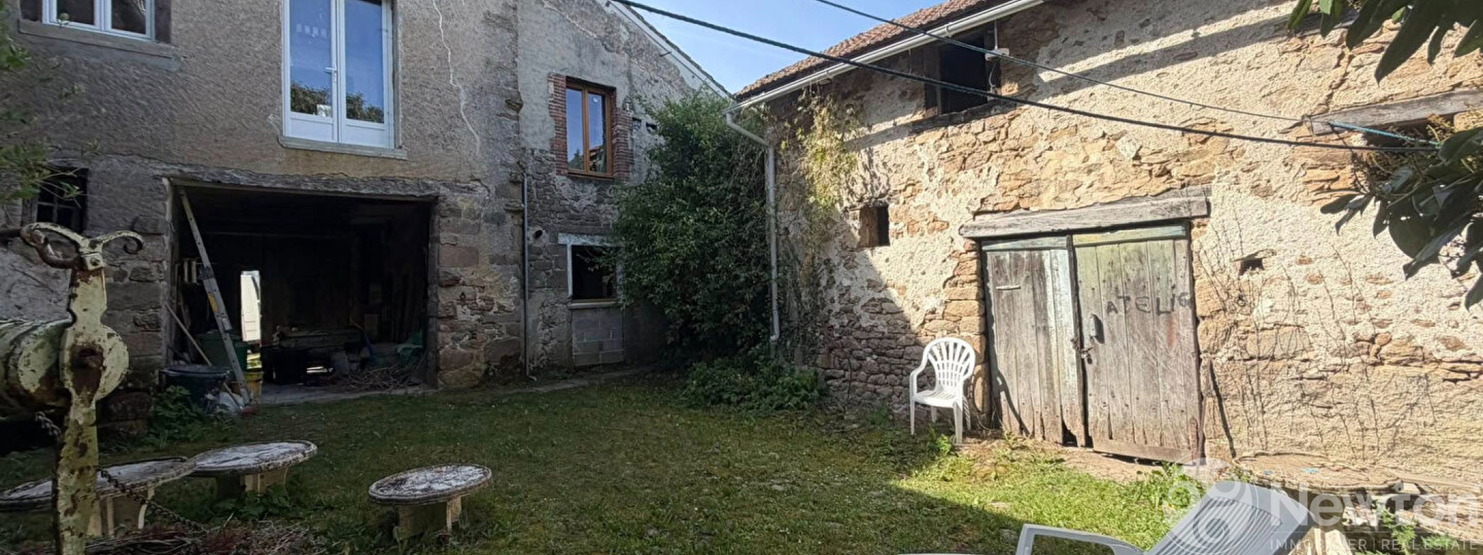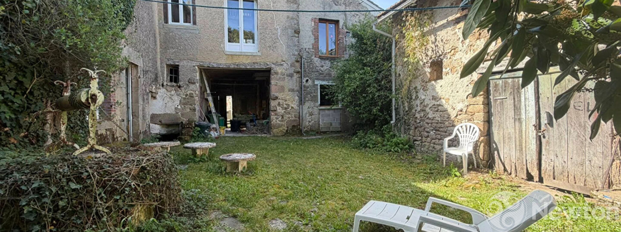 Située à proximité du village de Bessines-sur-Gartempe, cette propriété mitoyenne atypique et pleine de caractère offre de très beaux volumes, une cour publique, une cour privative fermée, un jardin ainsi qu'une grande grange.