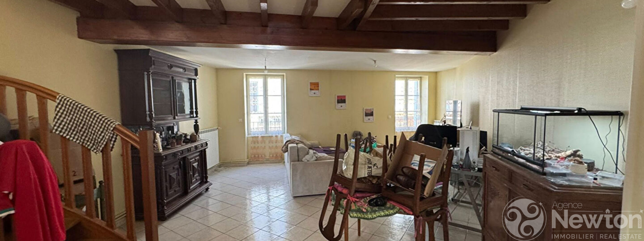 A l'arrière de la propriété se trouve l'accès au local commercial avec vitrine sur l'une des rues principales de Châteauponsac. Au-dessus, un appartement duplex de 110 m² habitables, entièrement rénové, comprenant 3 chambres. L'ensemble commerce + appartement génère actuellement 1 070 euros de loyers mensuels. Le bail du commerce arrivant à échéance cette année, la propriété peut être vendue libre ou avec locataire en place.