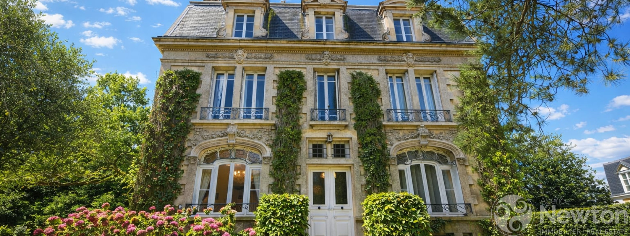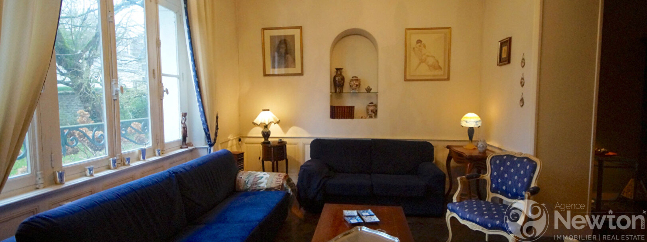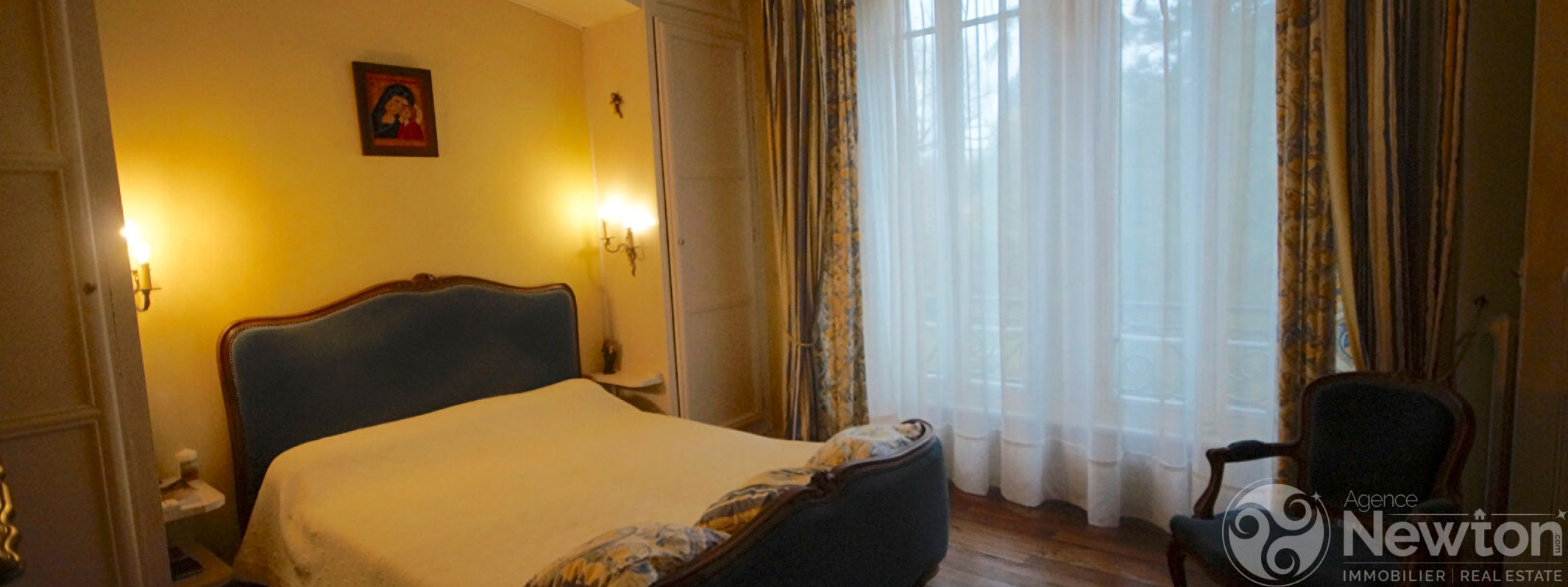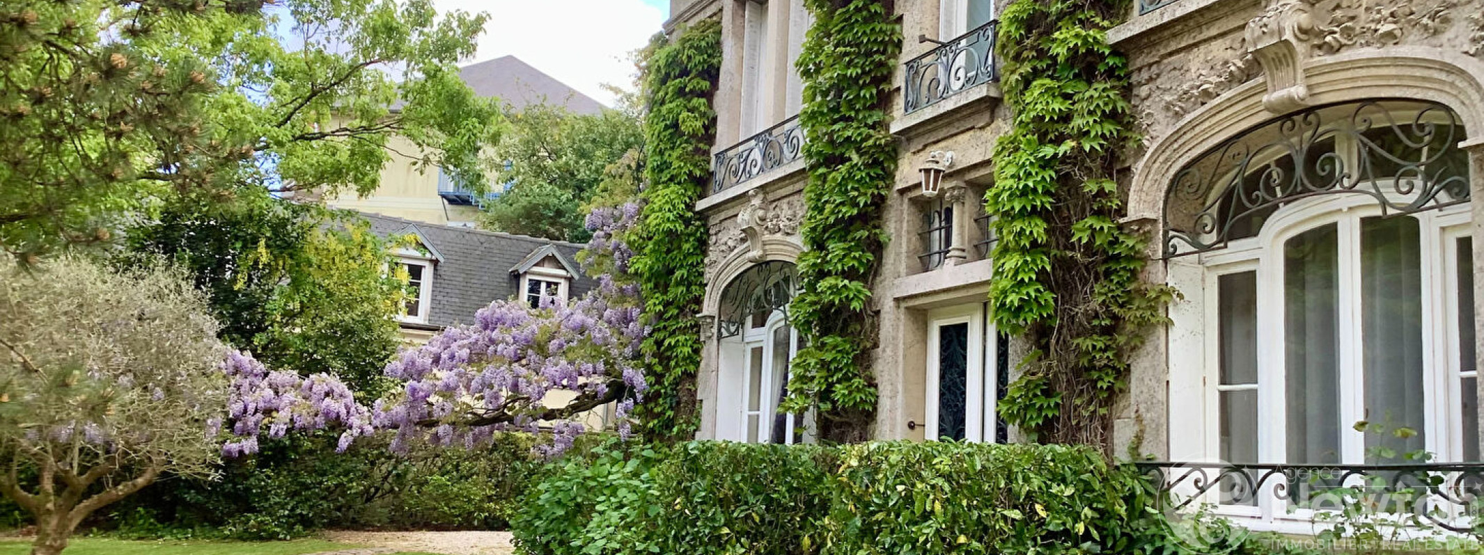A l'extérieur, garage, parking, jardin clos agrémenté de pelouses et d'arbustes. (5.00 % honoraires TTC à la charge de l'acquéreur.)