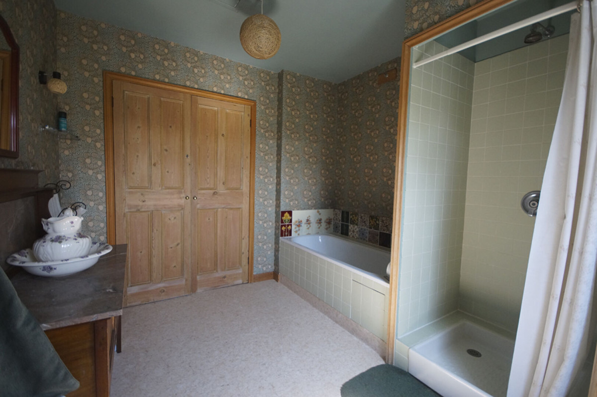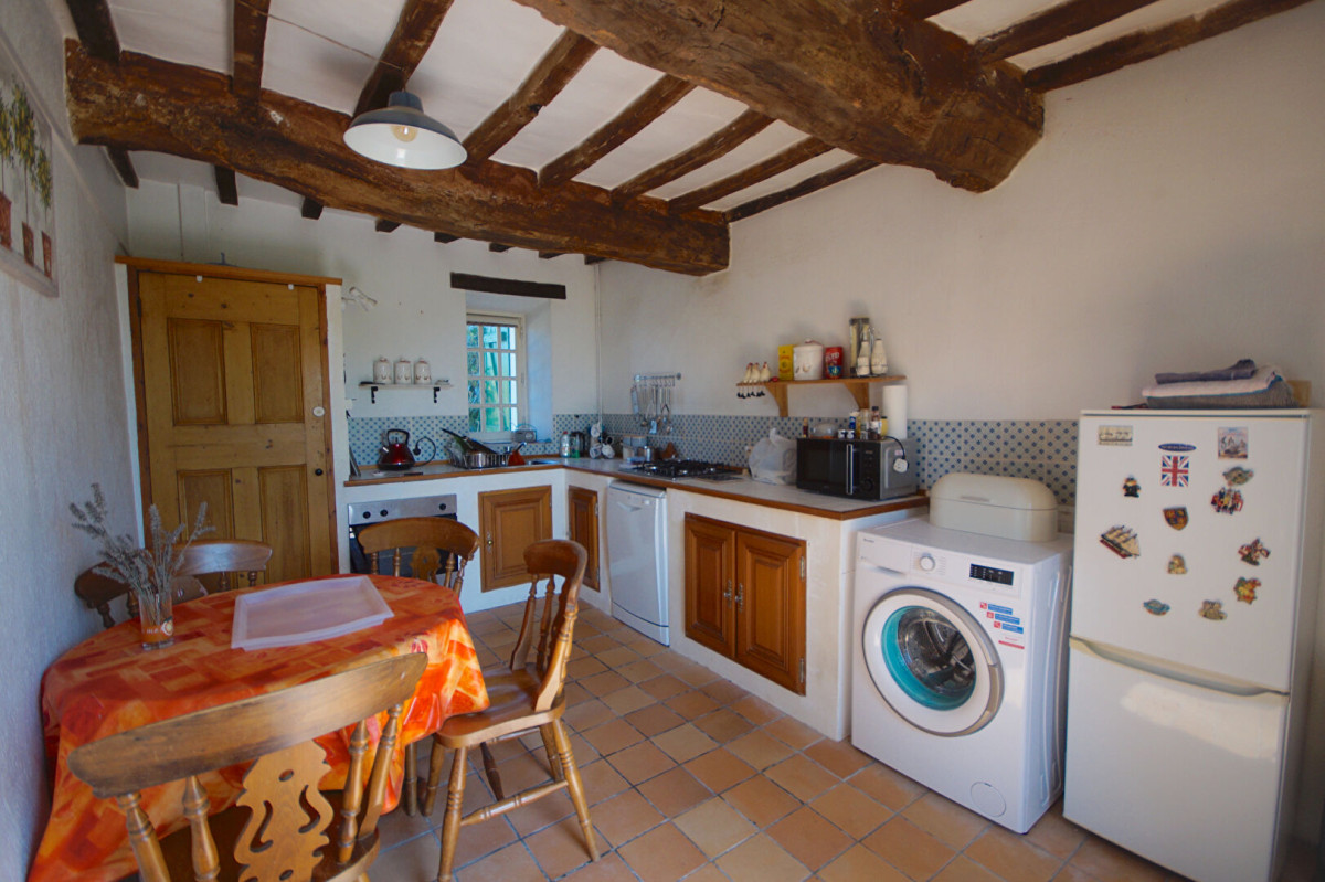 A l'intérieur, vous trouverez une cuisine aménagée, un poêle à bois pour des soirées chaleureuses, ainsi qu'une salle de bain et deux WC. Le chauffage est électrique et l'eau chaude est fournie par un ballon électrique.