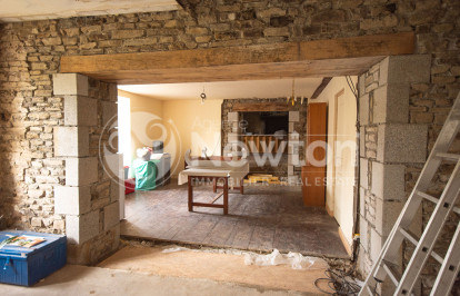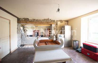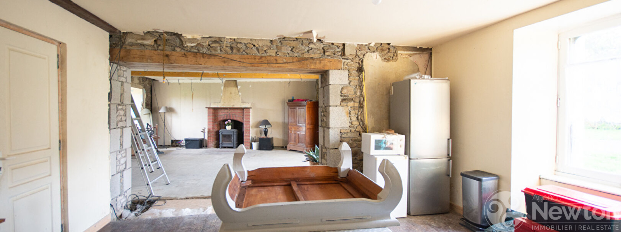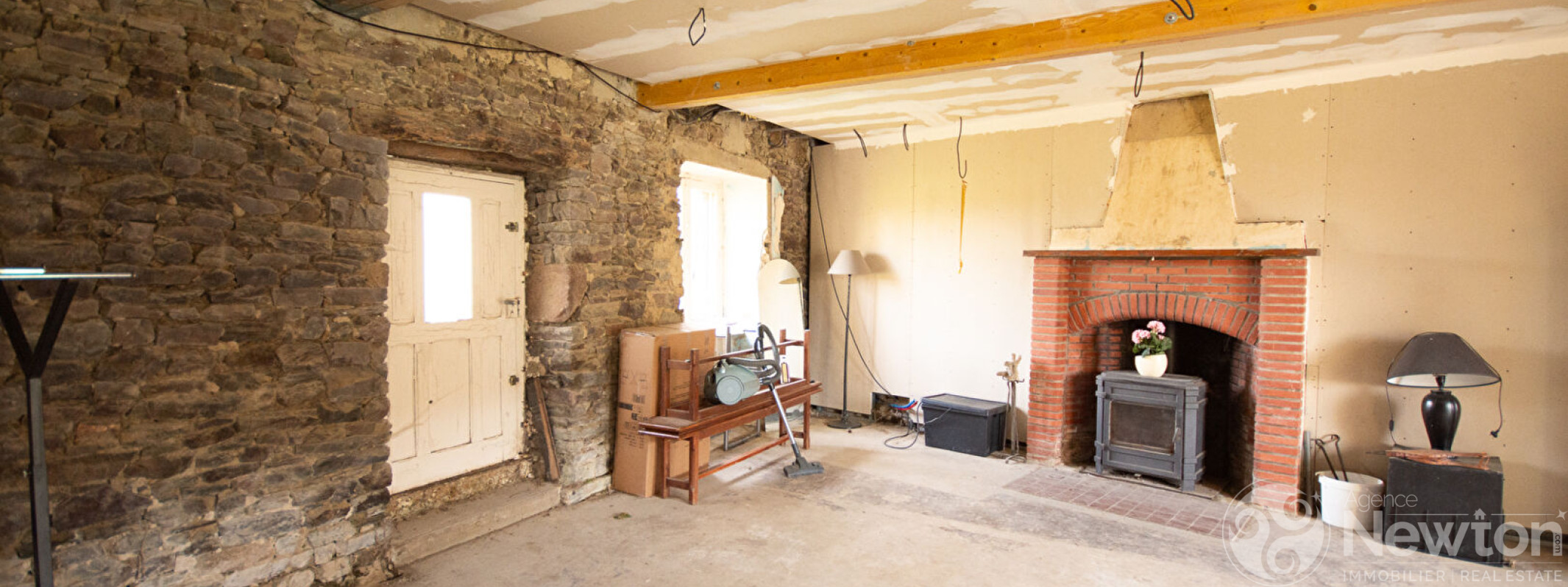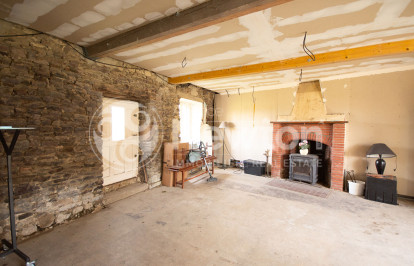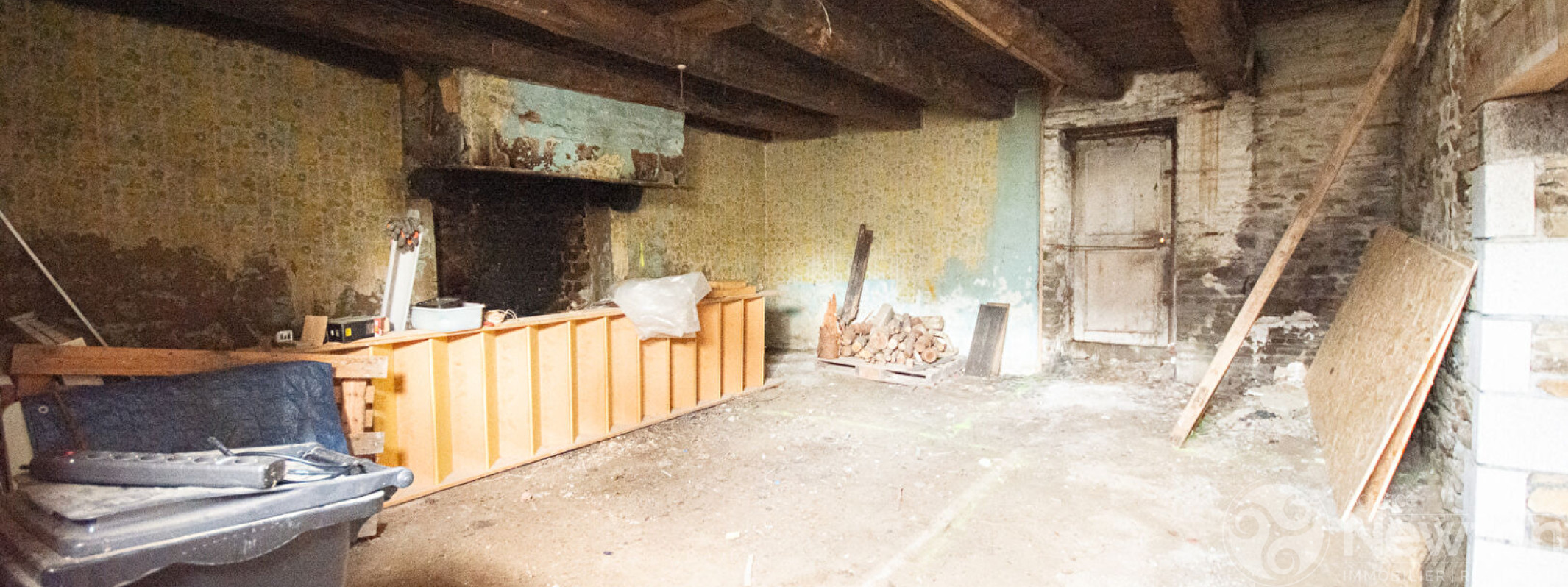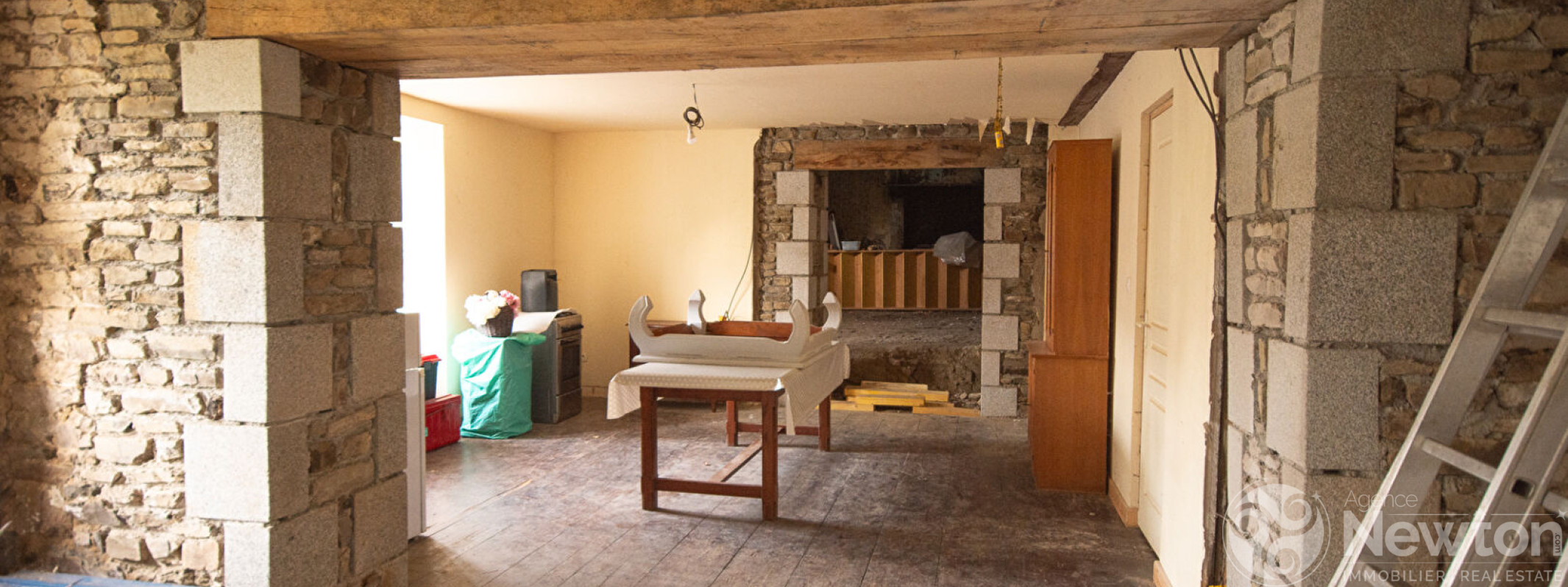 Salle à manger/séjour avec cheminée en granit (sol en terre battue) de 39 m³