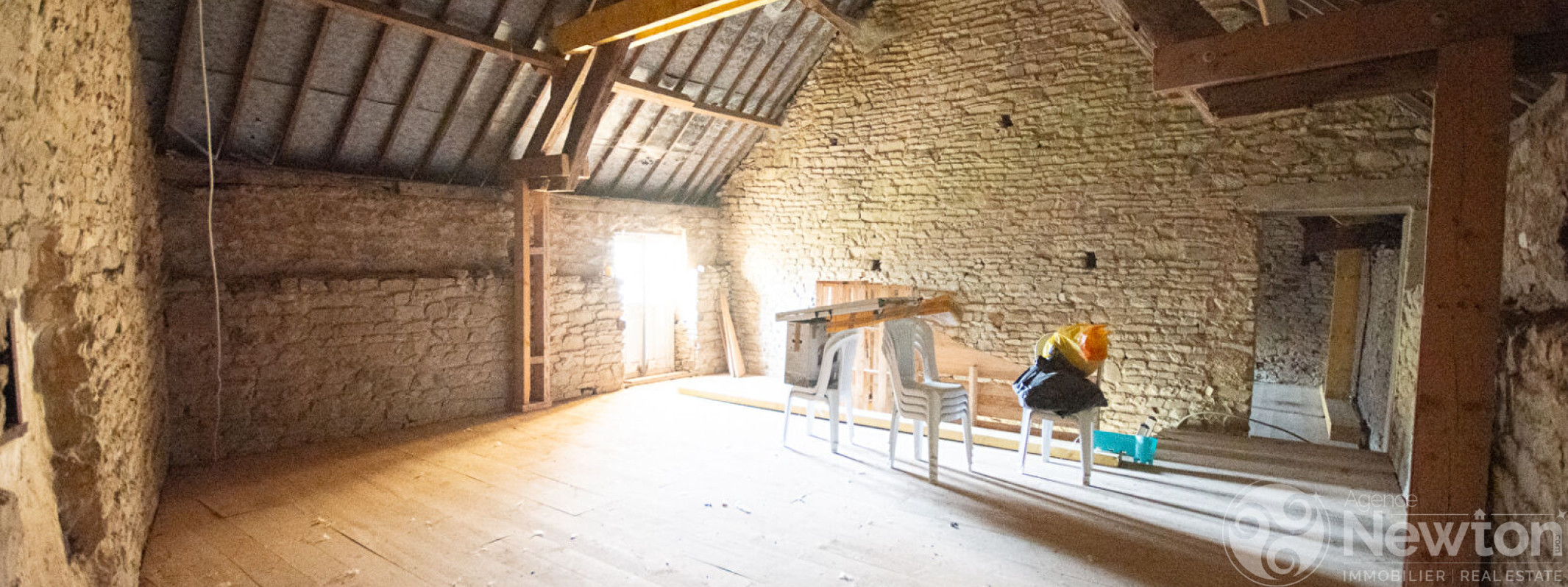 A l'étage, deux grandes pièces pourraient accueillir deux ou trois chambres et une salle d'eau supplémentaire.