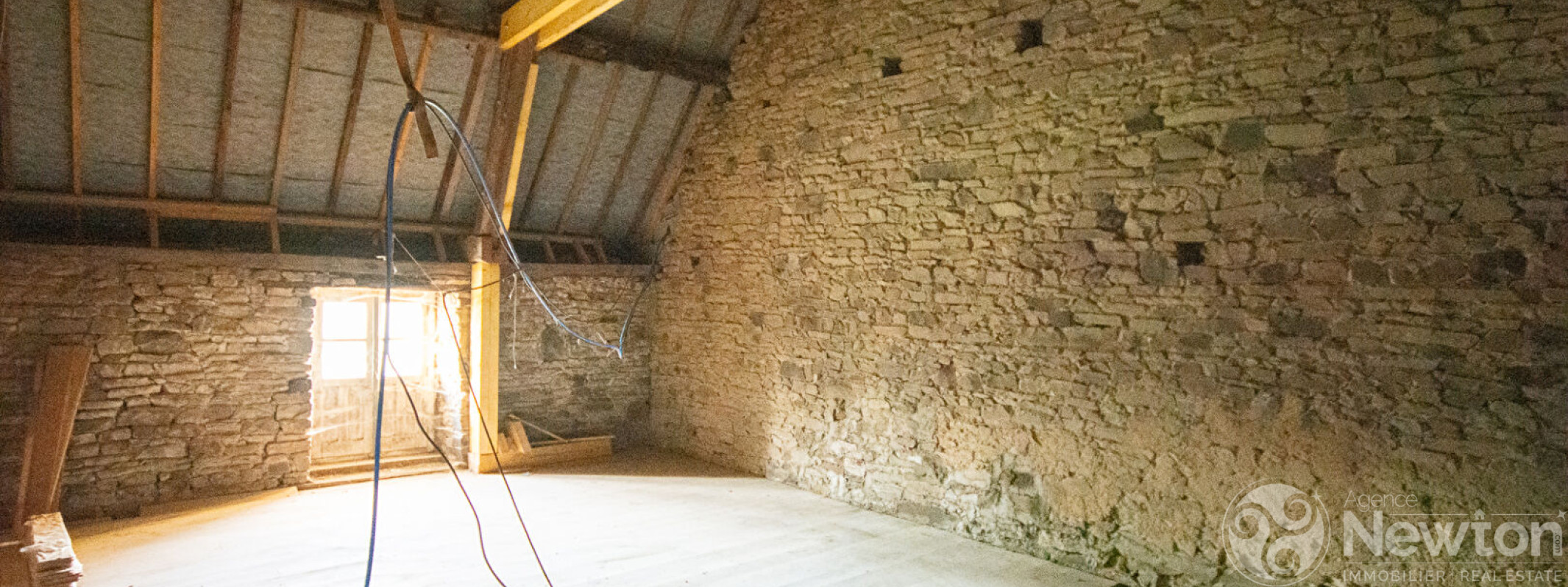 A l'étage : 2 grandes pièces d'environ 40 m² chacune (actuellement accessibles par une échelle)