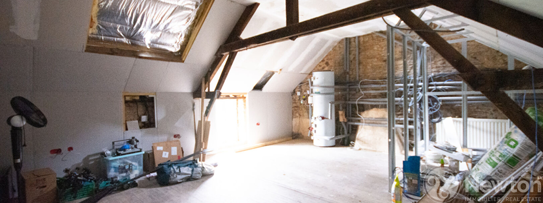 A l'étage : 2 grandes pièces pouvant être aménagées en chambres et salles de bains supplémentaires (terrain à aménager)
