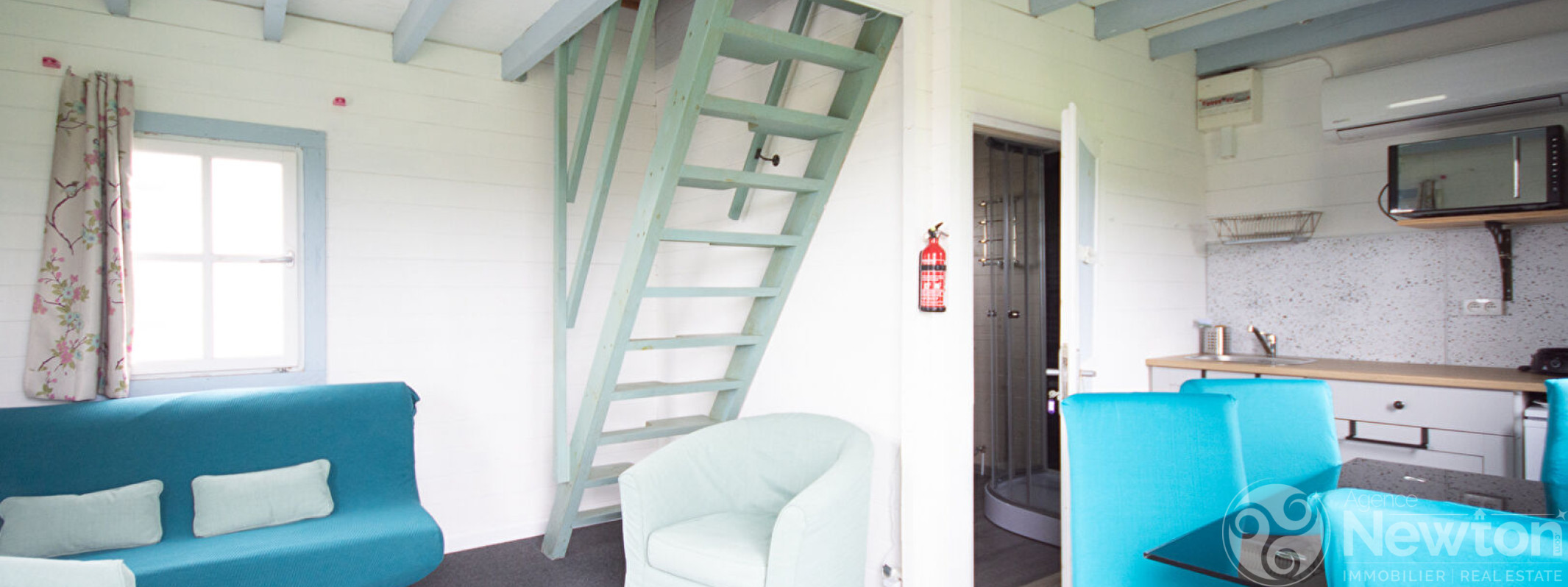 Une « Tiny-House » idéale pour un hébergement supplémentaire, avec séjour/cuisine d'angle, salle d'eau avec WC et chambre dans les combles. Une autre salle d'eau avec WC est attenante et idéale pour les campeurs.