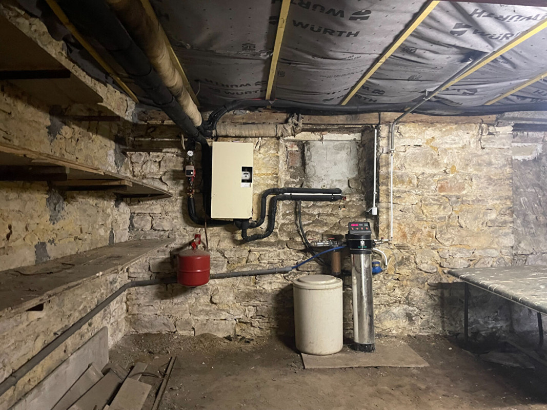 Le sous-sol occupe toute l'emprise de la maison et comprend un atelier ainsi qu'un vaste espace de rangement. Une jolie arcade couverte mène au jardin clos, avec la possibilité d'aménager une cuisine d'été ou un espace barbecue.