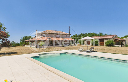 LOT-proche PUY L'EVEQUE (130m2), 3 chambres, avec,vue,piscine et dependances sure un terrain de 1.8 ha.