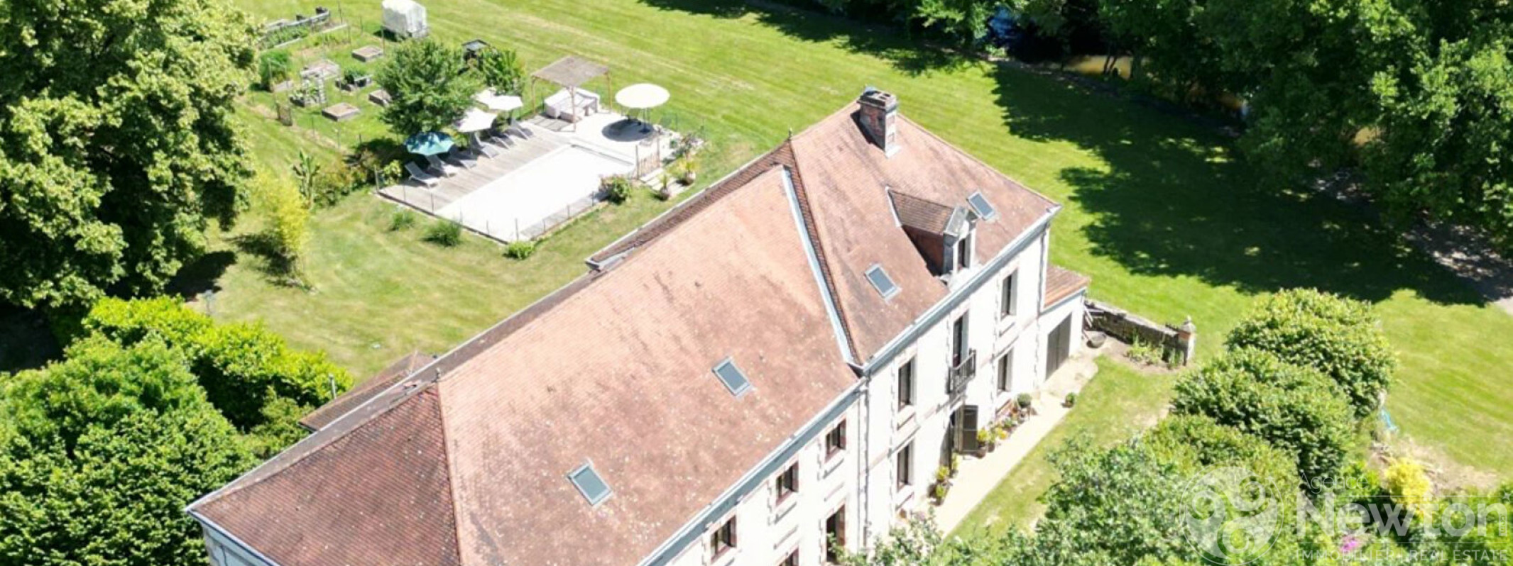 This beautifully restored former papermill (c.1670) offers around 348 m² of living space, including a 200 m² main house and a 148 m² independent apartment, set within 9,509 m² of landscaped gardens with a swimming pool and river frontage.