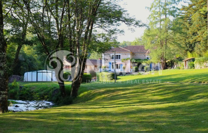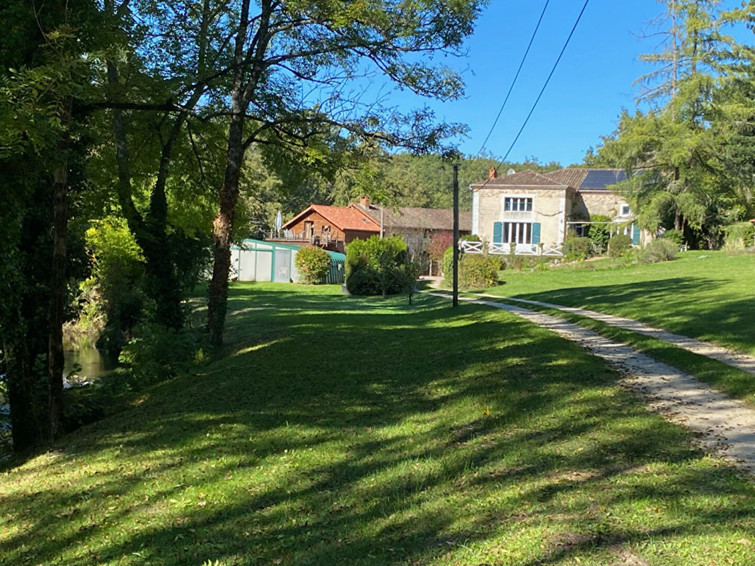 Un Havre Tranquille en Dordogne avec Front de Rivière et Charme Infini Caché au bout d'un chemin privé, entouré de six hectares de magnifiques parcs, prairies et bois, ce domaine exceptionnel en bord de rivière offre le refuge ultime au coeur de la Dordogne. Avec des vues sur la rivière depuis la plupart des fenêtres et le charme de Nontron à seulement quelques minutes en voiture, c'est une demeure où la nature et l'élégance cohabitent en parfaite harmonie. A moins d'une heure d'Angoulême et de Périgueux, cette propriété enchanteuse semble loin de l'agitation de la vie moderne. Des arbres anciens encadrent l'approche, laissant place au magnifique manoir du XIXe siècle qui se dresse fièrement dans ce domaine paisible. Le cadre est d'une beauté rare - un lieu où la tranquillité règne et où le temps semble ralentir. L'atmosphère rappelle le ?Déjeuner sur l'herbe' de Manet - des après-midis d'été paresseux passés à pique-niquer sur l'île privée, les rires des enfants portés par la brise, et le doux murmure de la rivière qui s'écoule sur les rochers et les cascades. Avec 500 mètres de façade fluviale privée le long de la Bandiat cristalline, il y a de l'espace pour se promener, pêcher ou mettre à l'eau un petit bateau. Par les chaudes journées d'été, l'air frais qui s'élève de l'eau rafraîchit tout le domaine. La Maison du Manoir Descendant une longue allée bordée d'arbres, la résidence majestueuse se dévoile - trois niveaux élégants d'architecture intemporelle et de confort raffiné. A l'intérieur, des pièces spacieuses avec cinq chambres magnifiquement aménagées et des salles de bains attenantes offrent de l'espace pour la famille et les invités. Les éléments d'origine abondent - parquets massifs, poutres apparentes et détails d'époque qui murmurent les histoires d'un temps révolu tout en se fondant parfaitement dans le confort moderne. Le développement durable a également été soigneusement pris en compte. La propriété bénéficie d'un chauffage géothermique économe en énergie et de 18 panneaux solaires fournissant l'électricité et l'éclairage, offrant au manoir une impressionnante classification énergétique de « C ». L'hébergement pour les invitésA côté de la maison principale se trouve un deuxième bâtiment en pierre de plus de 450 m², actuellement exploité comme un gîte et un hébergement pour invités prospère. Cette entreprise bien établie génère un revenu annuel conséquent et régulier à cinq chiffres - tout au long de l'année, avec un effort marketing minimal.Le bâtiment comprend deux gîtes indépendants (accueillant 8 et 6 personnes), deux studios et une charmante suite pour invités - chacun avec des espaces de vie extérieurs privés et des zones de barbecue. A une extrémité, une grande salle polyvalente offre des opportunités pour des séminaires, des retraites de yoga ou des ateliers créatifs tels que la peinture, photographie, ou écriture - parfaitement complétée par le cadre paisible au bord de la rivière. Loisirs et style de vie Au-delà de ses intérieurs élégants, ce domaine célèbre la vie en plein air. Une piscine chauffée et couverte de 14 x 7 m garantit des moments de plaisir toute l'année, tandis que des espaces pour la pratique du golf, de la pétanque et du badminton invitent à des après-midis de détente entre amis. Pour ceux en quête de sérénité, les jardins paysagers et les sentiers boisés offrent des occasions infinies de se reconnecter avec la nature - accompagnée uniquement par le chant des oiseaux et le doux rythme de l'eau. Une source naturelle fournit de l'eau potable sur place, tandis qu'un petit étang ajoute au charme idyllique de ce paradis privé. Cette propriété offre non seulement une maison, mais un mode de vie - où beauté, paix et autosuffisance coexistent dans l'une des régions les plus appréciées de France. Rarement un domaine aussi harmonieux est mis sur le marché - un lieu où chaque jour ressemble à une retraite, et où la seule bande sonore est la nature elle-même.
