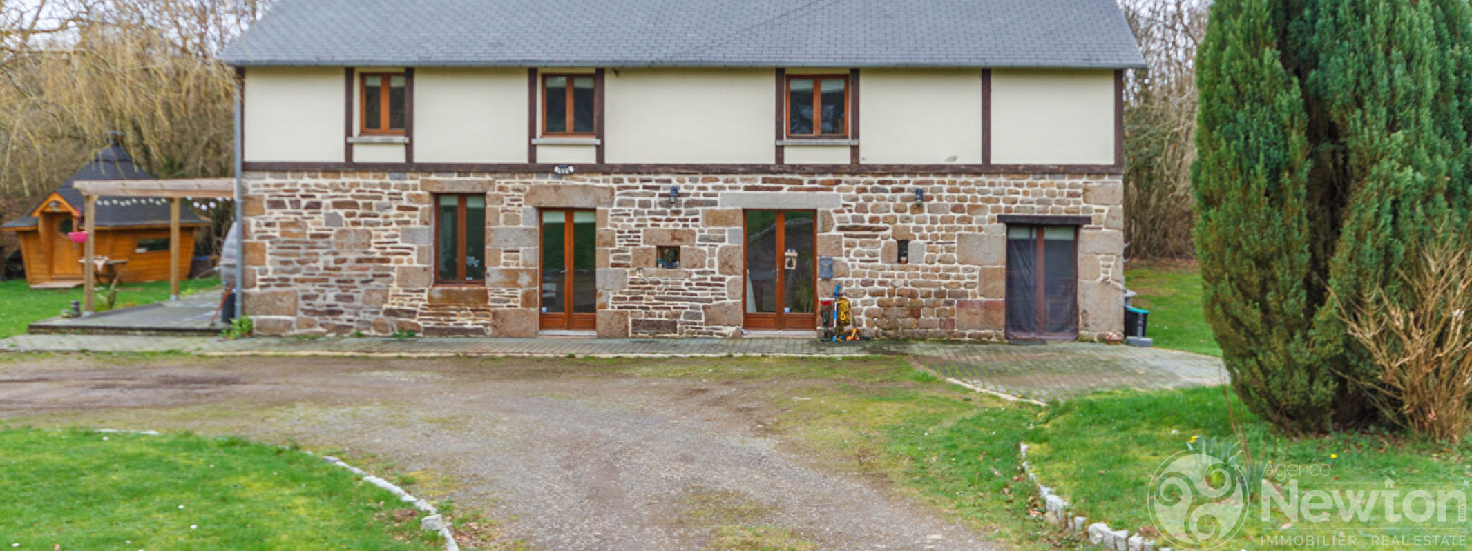 Manche ; Maison de campagne de 4 chambres avec garage, dépendances et jardin.