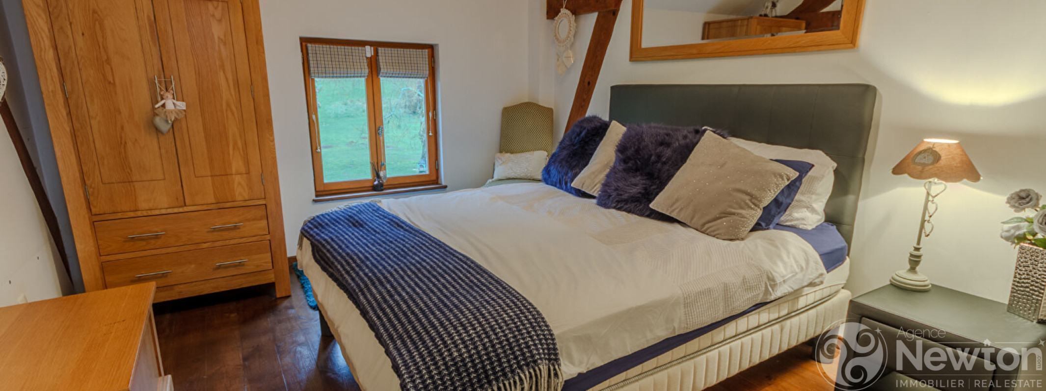 Charmante maison de campagne de 4 chambres située au calme, dans un petit hameau en pleine campagne, à proximité de Sourdeval pour toutes les commodités du quotidien. La propriété comprend une grange avec garage intégré, de jolis jardins et même un cabanon équipé d'un barbecue intérieur.