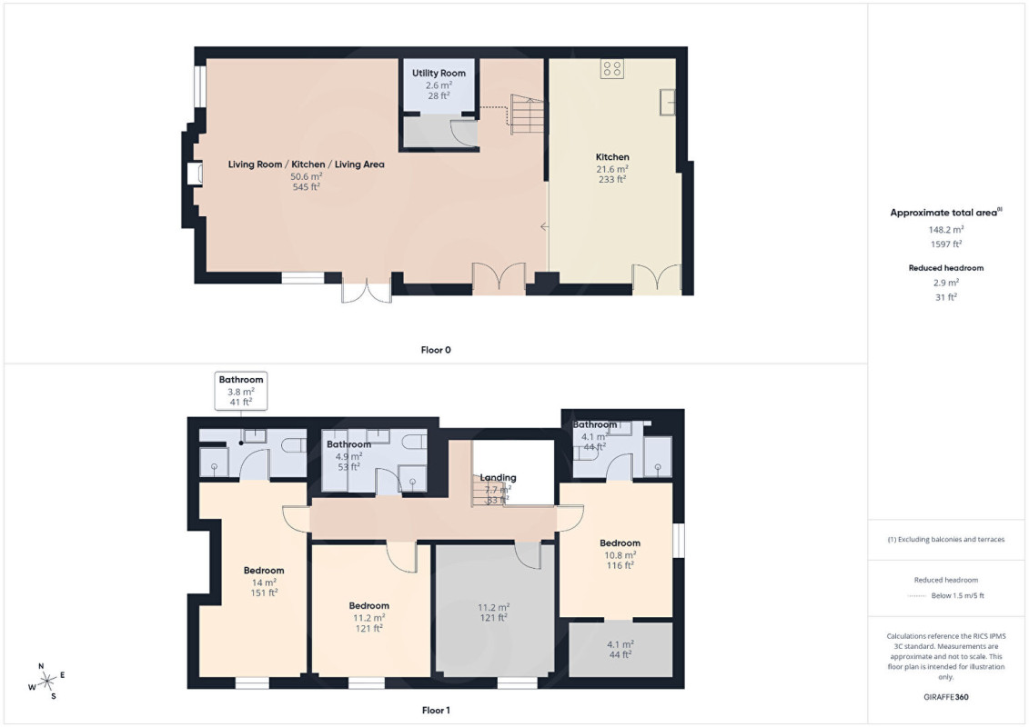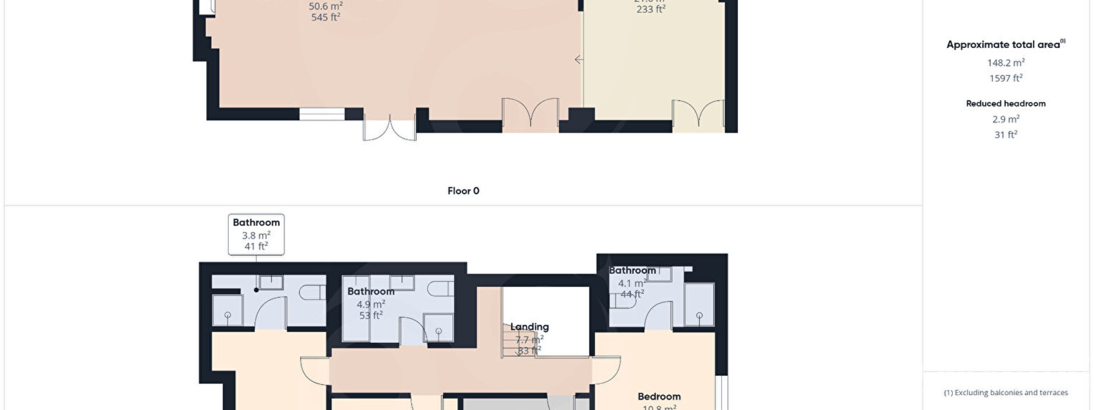 4 chambres, dont 2 avec salle d'eau privative (douche, lavabo et WC), et la chambre principale dispose également d'un dressing attenant. Actuellement, l'une des chambres est utilisée comme bureau.