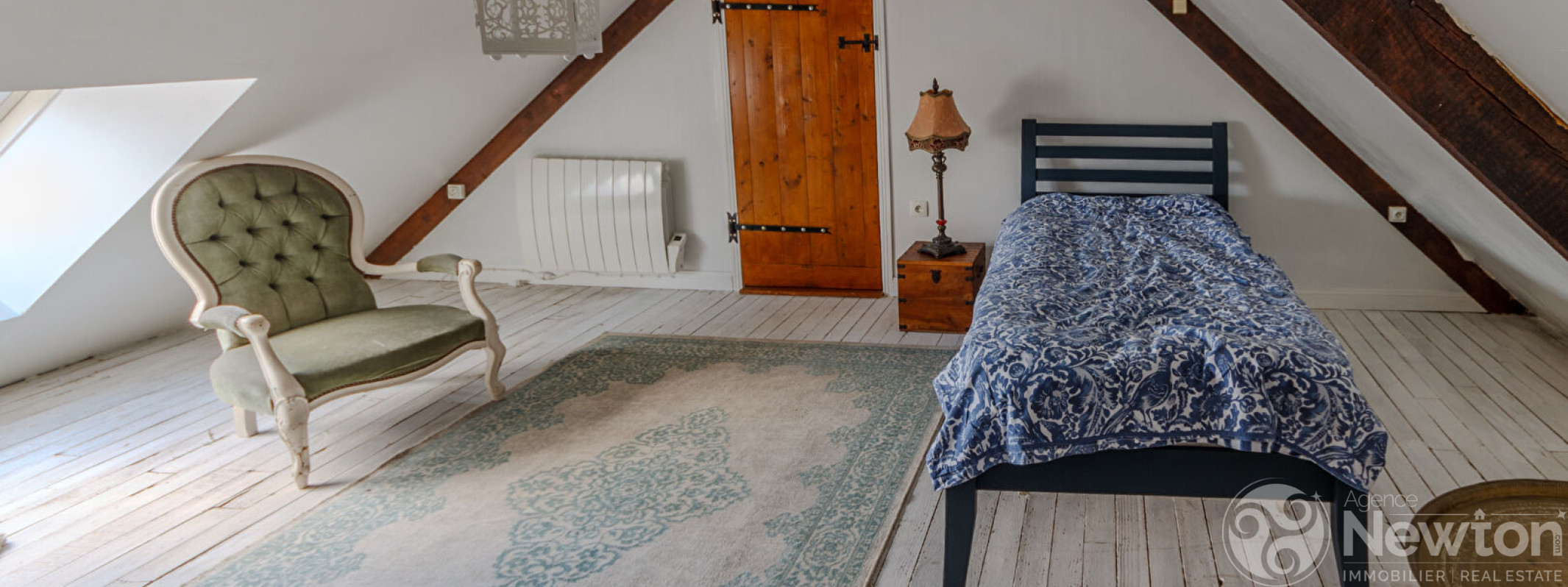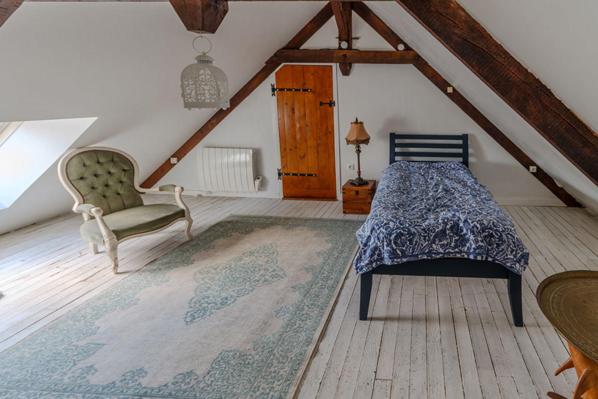 Depuis le palier, un autre escalier mène au deuxième étage où se trouve une grande chambre avec salle d'eau privative.