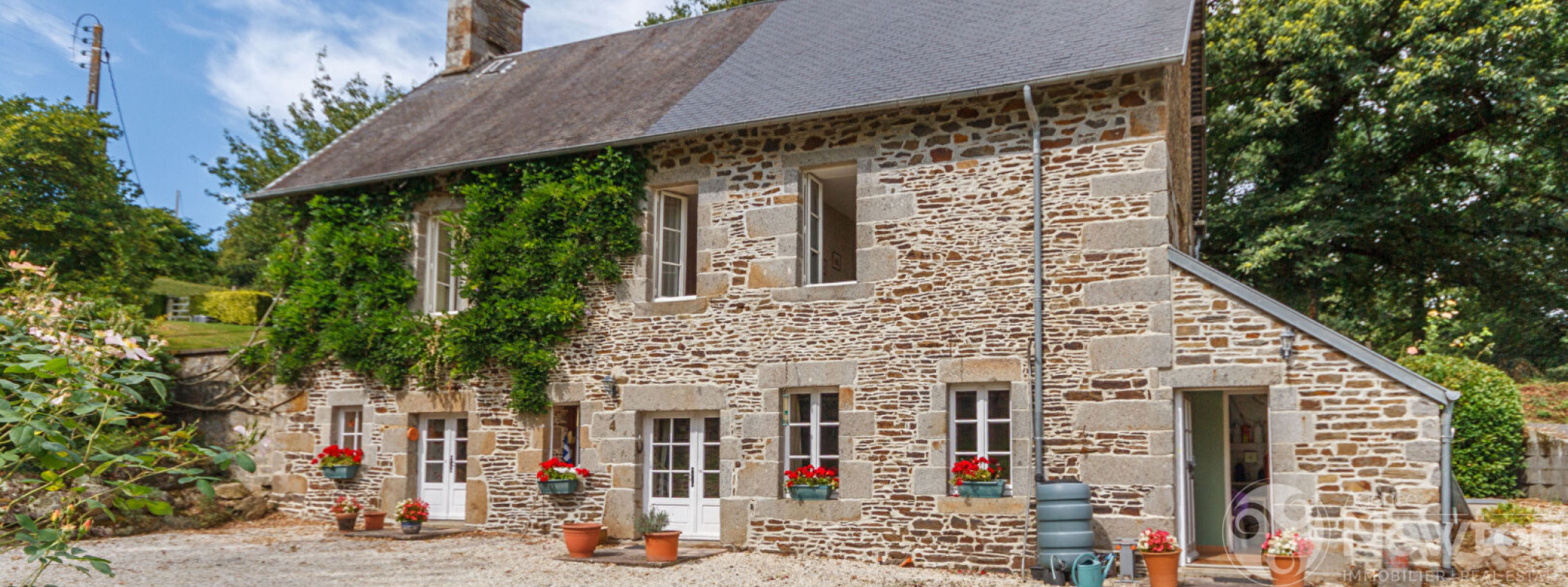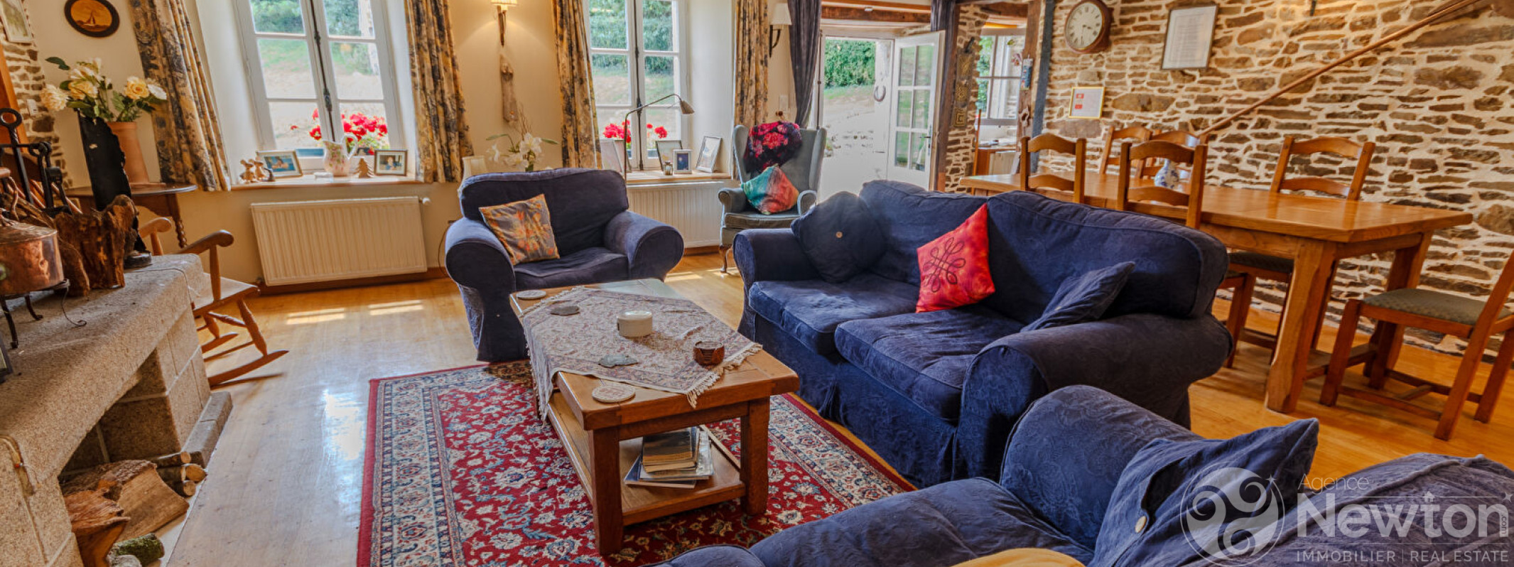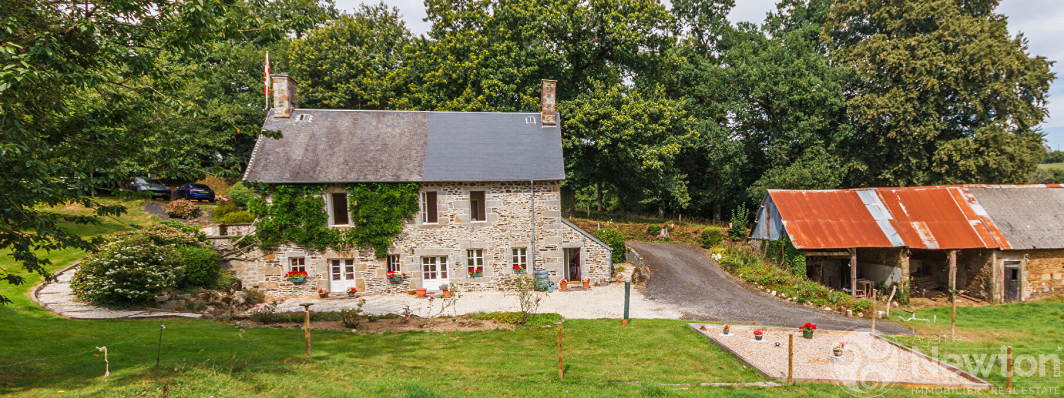 MANCHE : Maison en pierre de 4 chambres située dans un endroit privé avec dépendances et terrain.